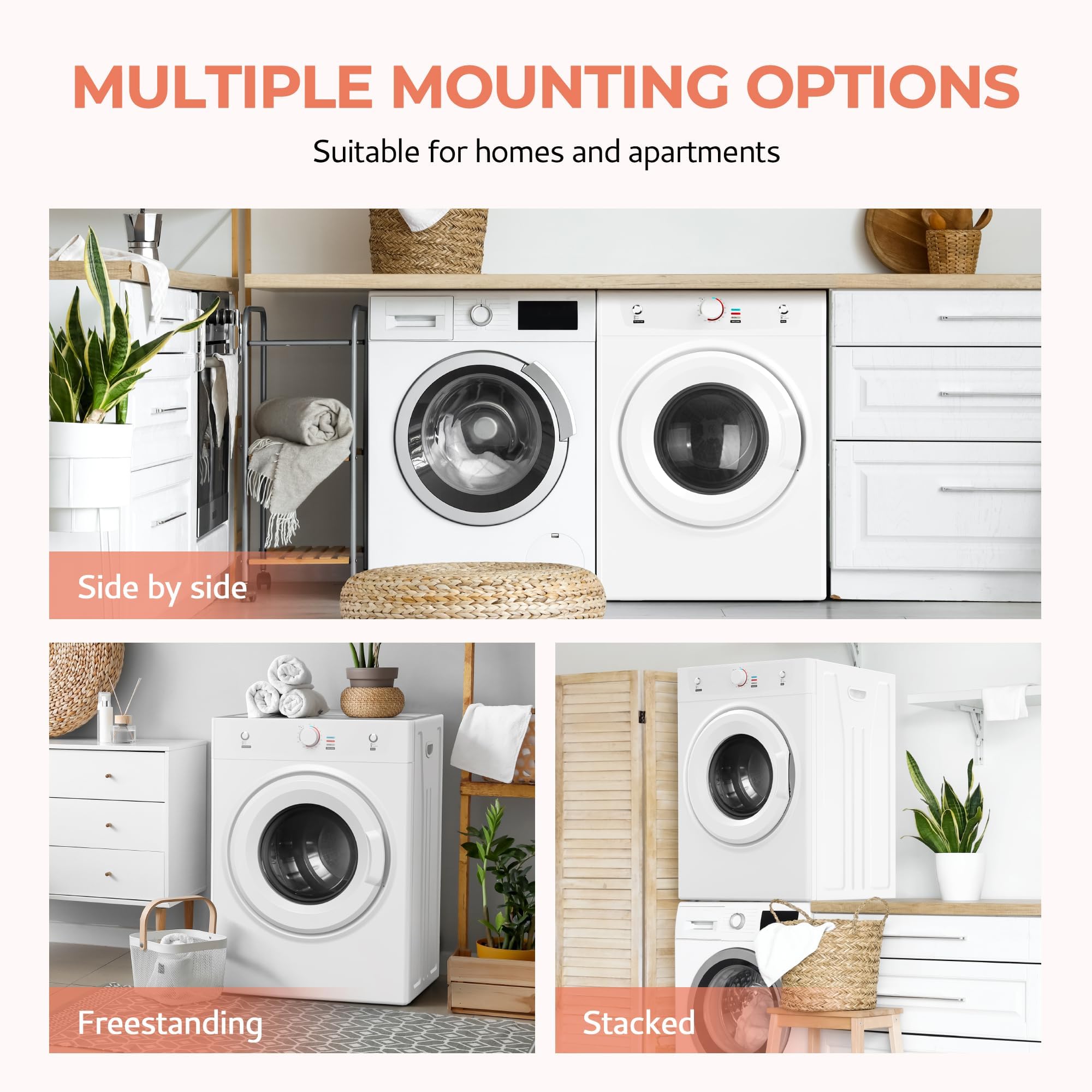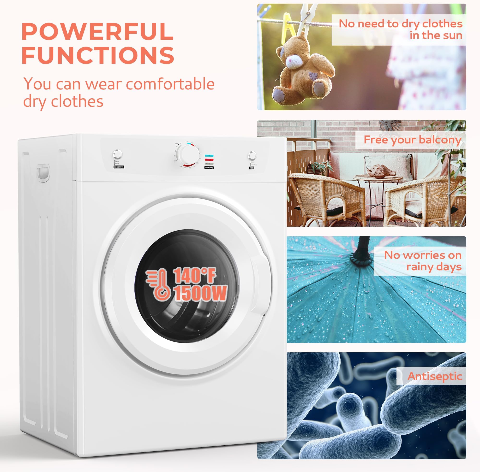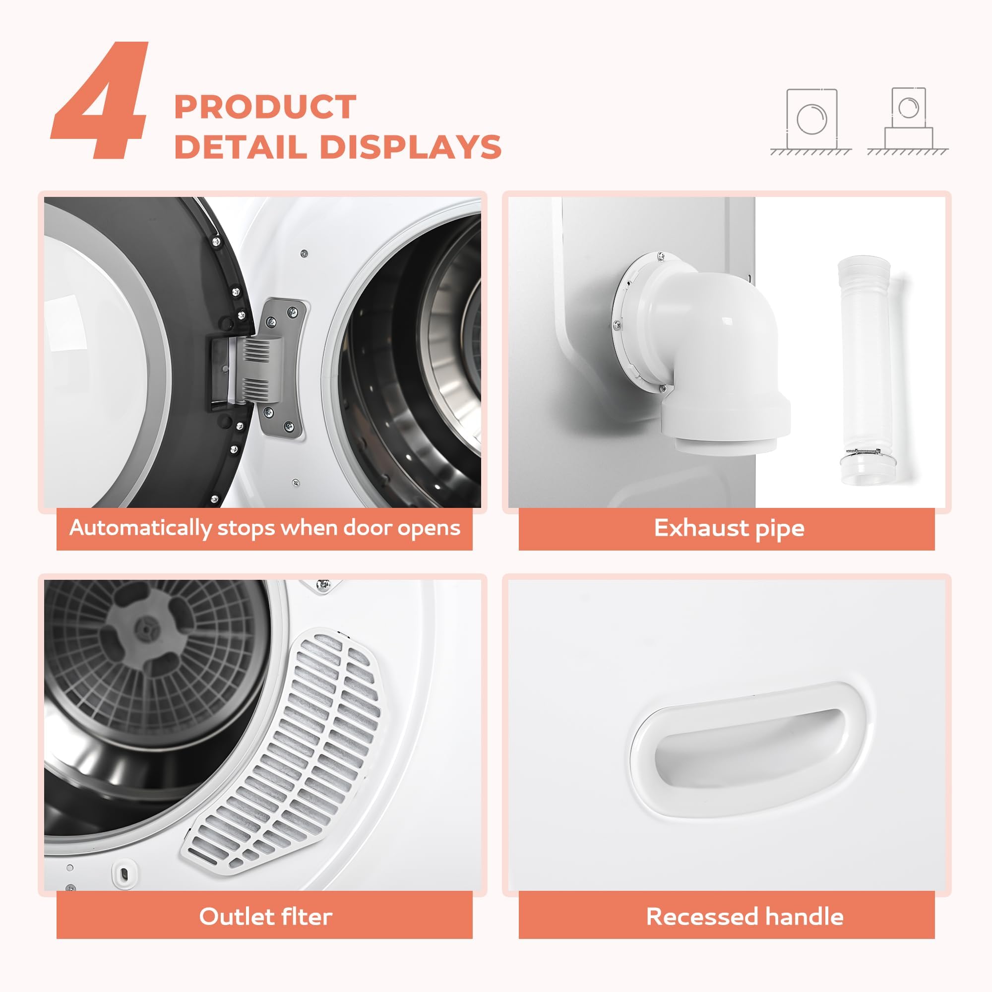 מייבש כביסה Euhomy, 3.5 רגל מעוקב, 1500W, מייבש כביסה מפלדת אל-חלד עם צינור פליטה לבית, דירה, מעונות, לבן