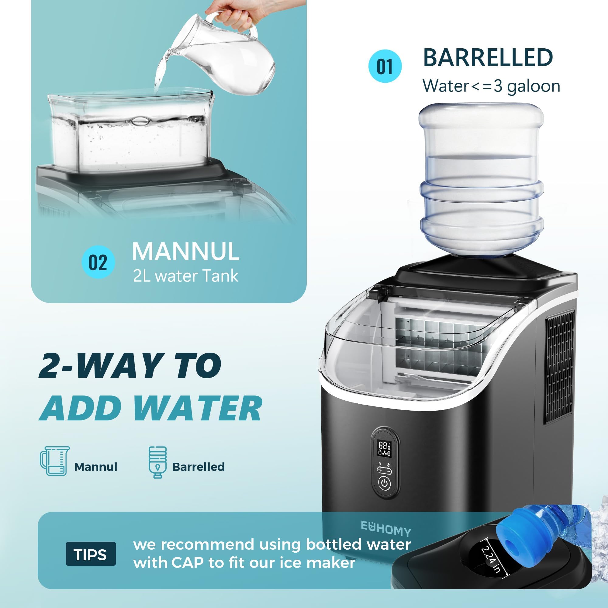 - הכנת קרח ב-13 דקות ושקט במיוחד: מכונת הקרח EUHOMY שלנו לשולחן העבודה אורכת רק 13 דקות ותיהנה מ-16 קוביות קרח טריות. עם מיכל מים חיצוני של 1.5 ליטר ומדחס עוצמתי, מכונת קוביות הקרח הניידת מייצרת בקלות קיבולת קרח מקסימלית של 34 פאונד קרח ליום ומכילה עד 1.8 פאונד קרח בכל פעם. בנוסף, מכונת הקרח שלנו לא רק מצוינת בקירור, אלא גם בעלת רעש רגיל של פחות מ-42db, מה שמבטיח סביבה נוחה ושקטה להנאה מהכנת קרח, בדומה למקפיא פעיל.