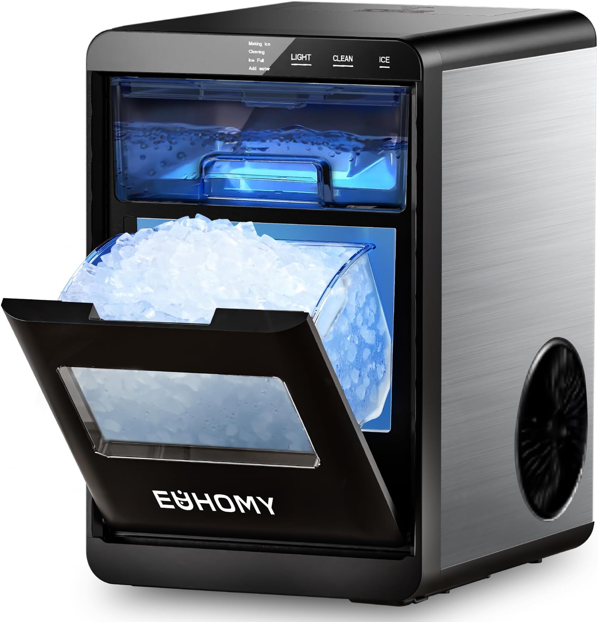 - קרח נאגטס לעיס ופריך: אוהבים ללעוס קרח? מכונת קרח נאגטס לדלפק של EUHOMY יוצרת קרח גלולות בעל מרקם מושלם, רך אך פריך להפליא. תיהנו מהטעם הקפוא האותנטי ישירות, או ערבבו אותו לקוקטיילים ומשקאות מוגזים וזו התוספת המושלמת לכל משקה.