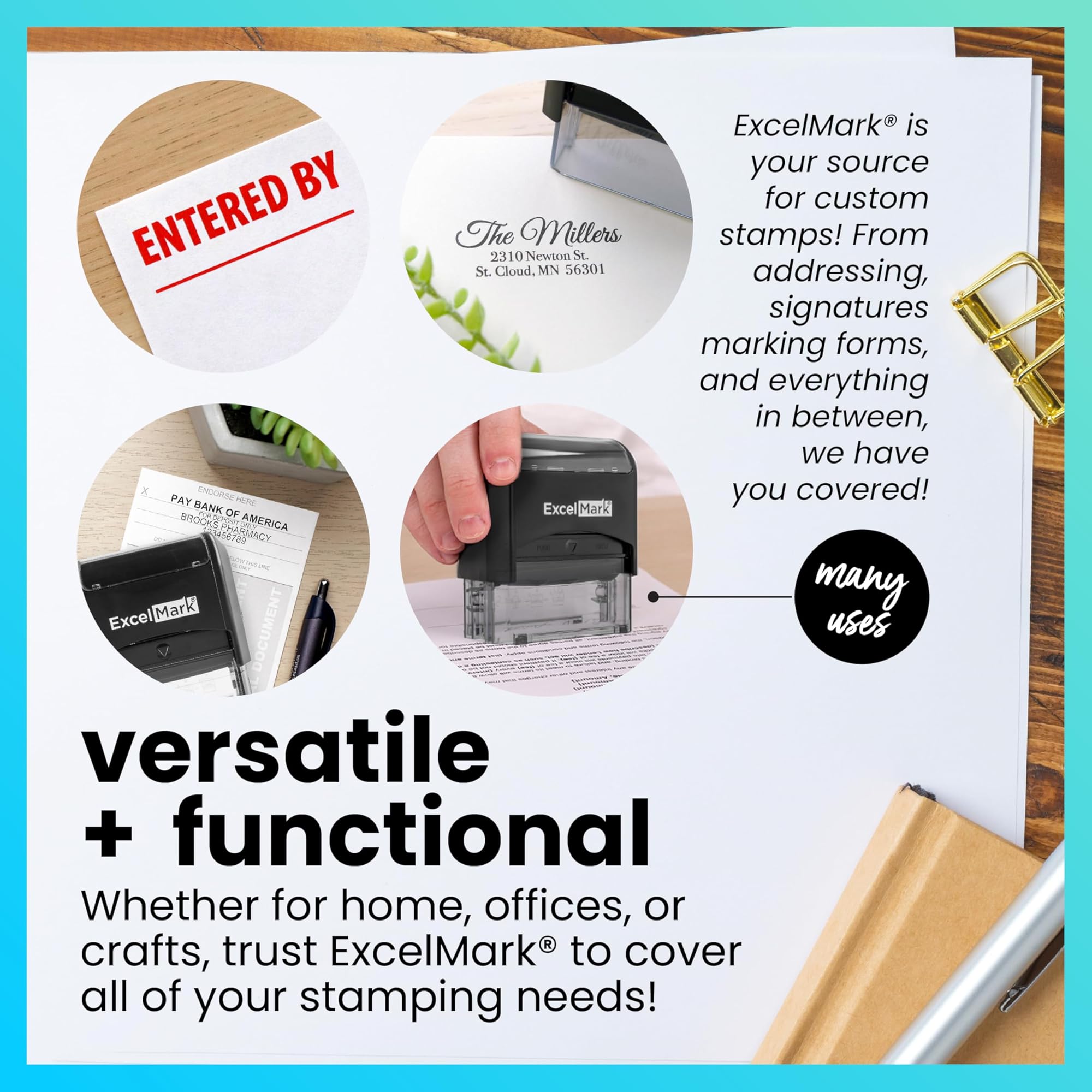 חותמת ExcelMark בהתאמה אישית - חותמות ברורות וחדות - חותמת גומי אישית עם דיו עצמי - לשימוש עבור חותמת כתובת ועוד (קטנה)