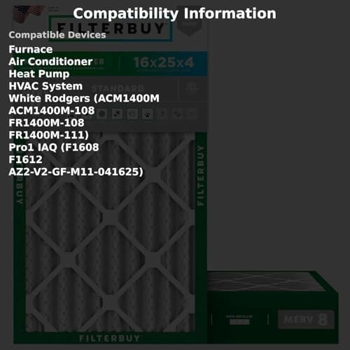 - תאימות אוניברסלית: מסנני אוויר חלופיים בגודל 16x25x4 לתנור, למזגן או למשאבת חום שלכם משפרים את יעילות מערכת ה-HVAC ותומכים באורח חיים בריא (גודל אמיתי: 15.50 אינץ' x 24.50 אינץ' x 3.63 אינץ'), תואמים גם ל-White Rodgers (ACM1400M, ACM1400M-108, FR1400M-108, FR1400M-111) ול-Pro1 IAQ (F1608, F1612, AZ2-V2-GF-M11-041625)