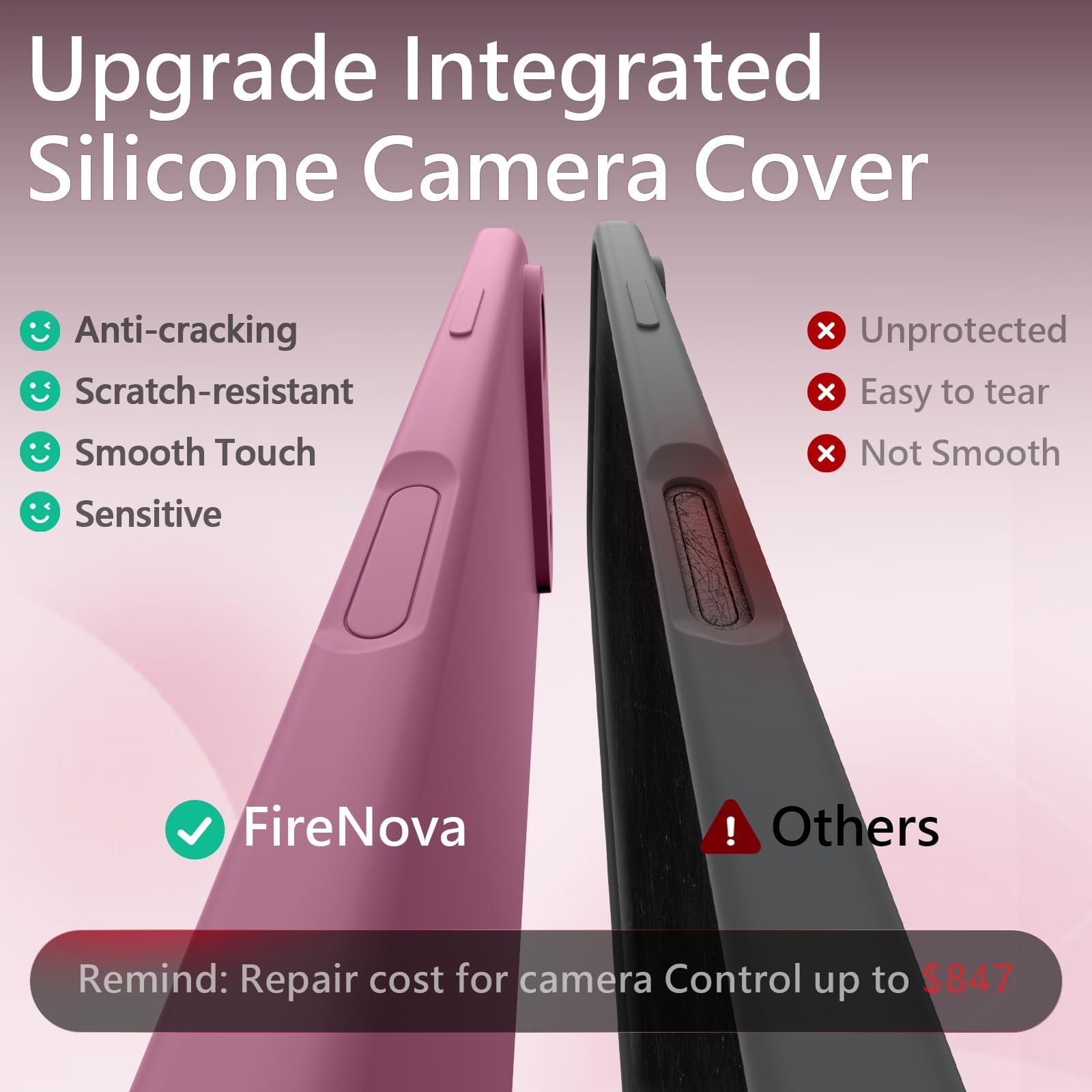 - הגנה על המצלמה: כיסוי מצלמה מובנה ייחודי להגנה על עדשת המצלמה, לעולם אל תדאג שהמצלמה תישבר, הרחק אבק מהמצלמה. חיתוכים מדויקים לגישה נוחה לכל היציאות, ללא הפרעה למצלמה ולפלאש.