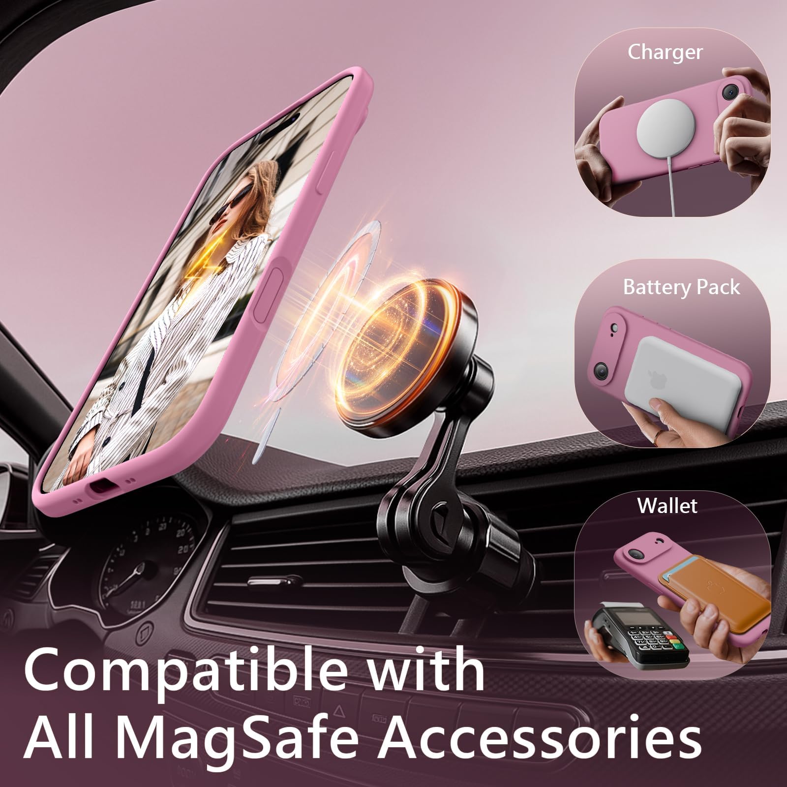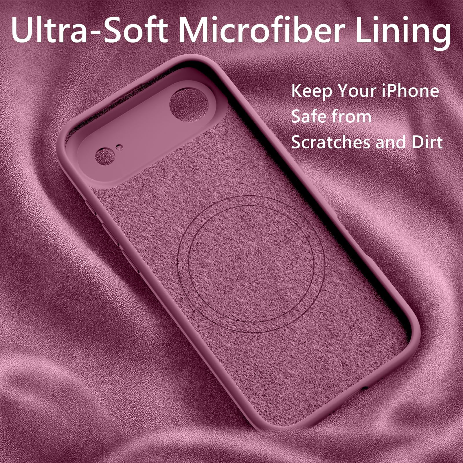כיסוי מגנטי FireNova לאייפון Air, תואם ל-MagSafe, [כפתור בקרת מצלמה משולב מסיליקון] [הגנה על המצלמה] כיסוי טלפון עם בטנת מיקרופייבר נגד שריטות, 6.5 אינץ', סגול לילך
