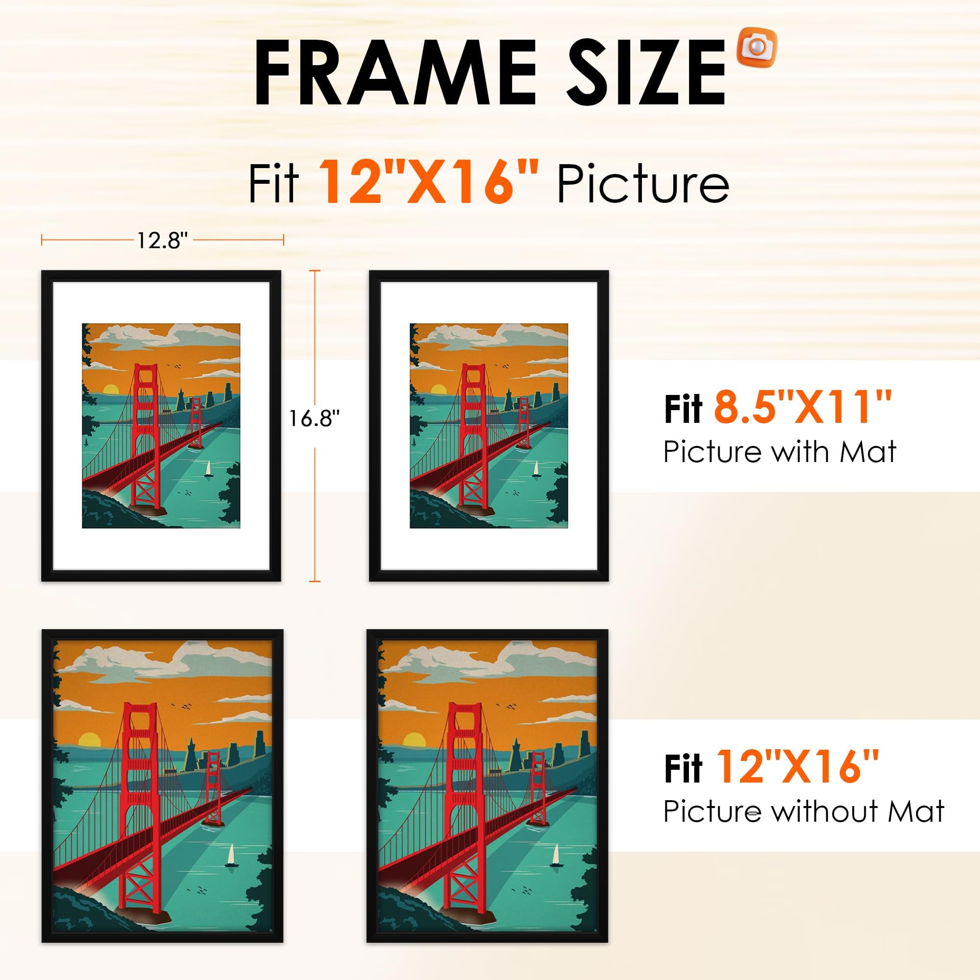 FIXSMITH מסגרות תמונה 12x16 סט של 2, מסגרת תמונה עם פרספקס HD, תמונות תצוגה 8.5x11 עם משטח או 11x17 ללא משטח, מסגרות תמונה שחורות לקולאז' קישוט קיר, מסגרת קיר גלריה