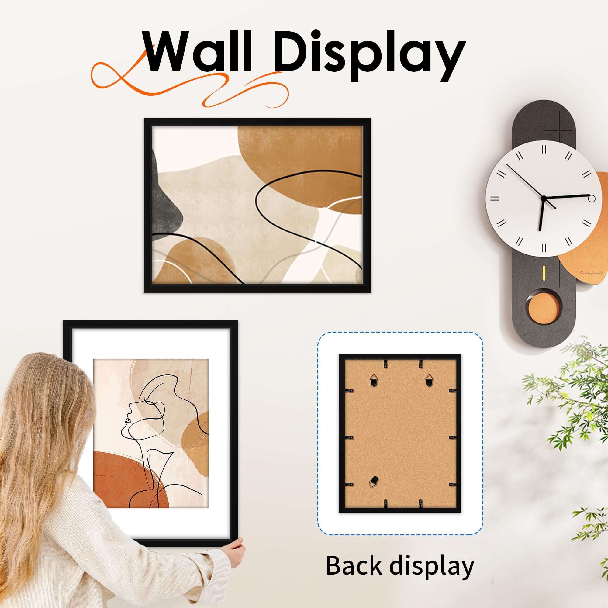 - קל לתלייה: סט המסגרות שלנו קל משקל, מה שמאפשר התקנה מהירה וקלה של המסגרות אופקית או אנכית על הקירות. אין דאגות לגבי כבדות מדי של המסגרות ומאמץ מוגזם על ווי הקיר. קל מאוד להחליף תמונות מהמסגרת והאבזמים החזקים מחזיקים את התמונות בחוזקה.