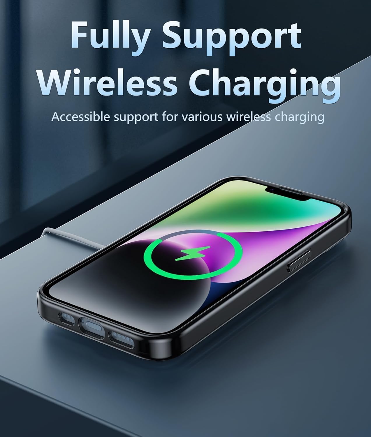 - [גזרה צמודה וטעינה אלחוטית] כיסוי הטלפון לאייפון 14 כולל גב דק, לא רק מאפשר לנו לאחוז בחוזקה בטלפון, אלא גם אינו משפיע על פונקציית הטעינה האלחוטית.
