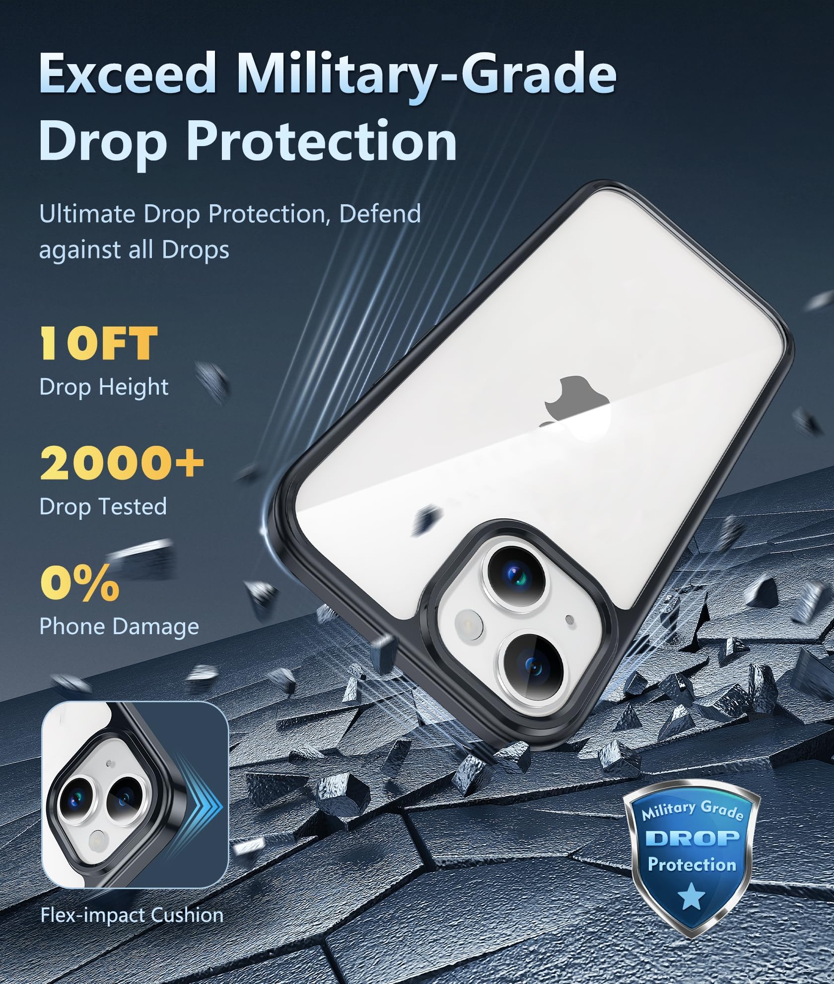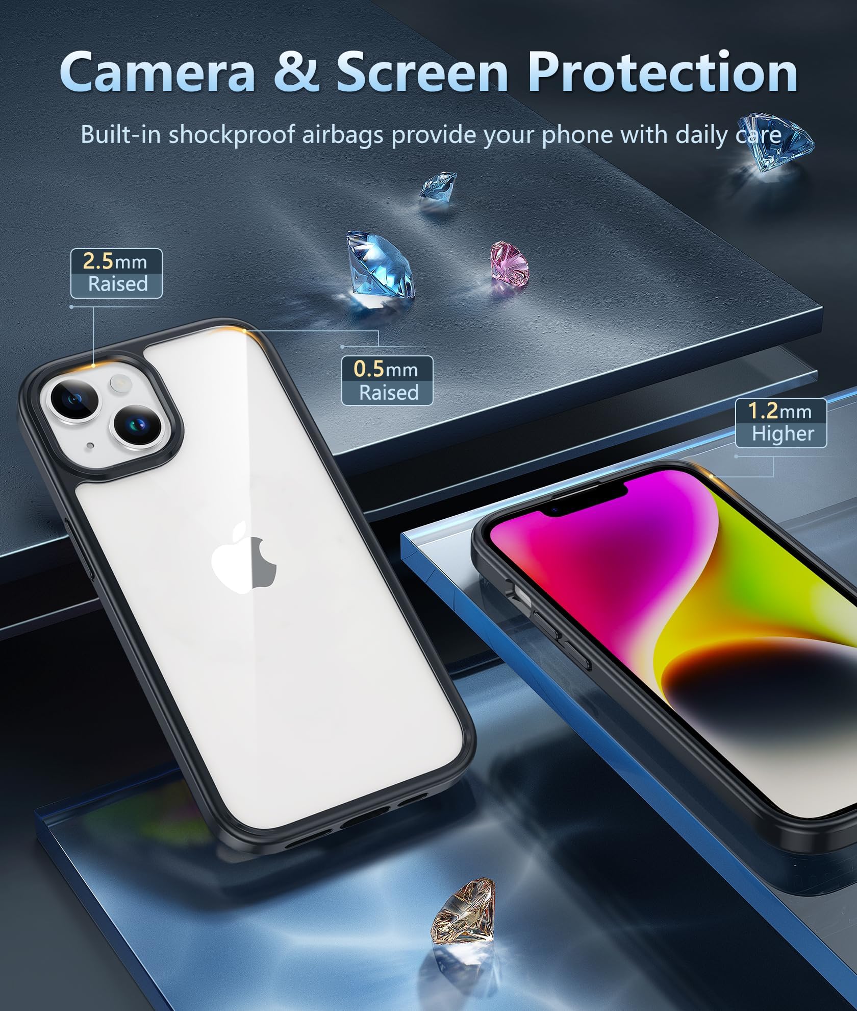 כיסוי טלפון FNTCASE לאייפון 14: כיסוי שקוף לאייפון 13 | כיסוי דק לטלפון סלולרי ברמה צבאית, הגנה מפני נפילות, נגד הצהבה - פגוש מגן עמיד בפני זעזועים (שחור D)