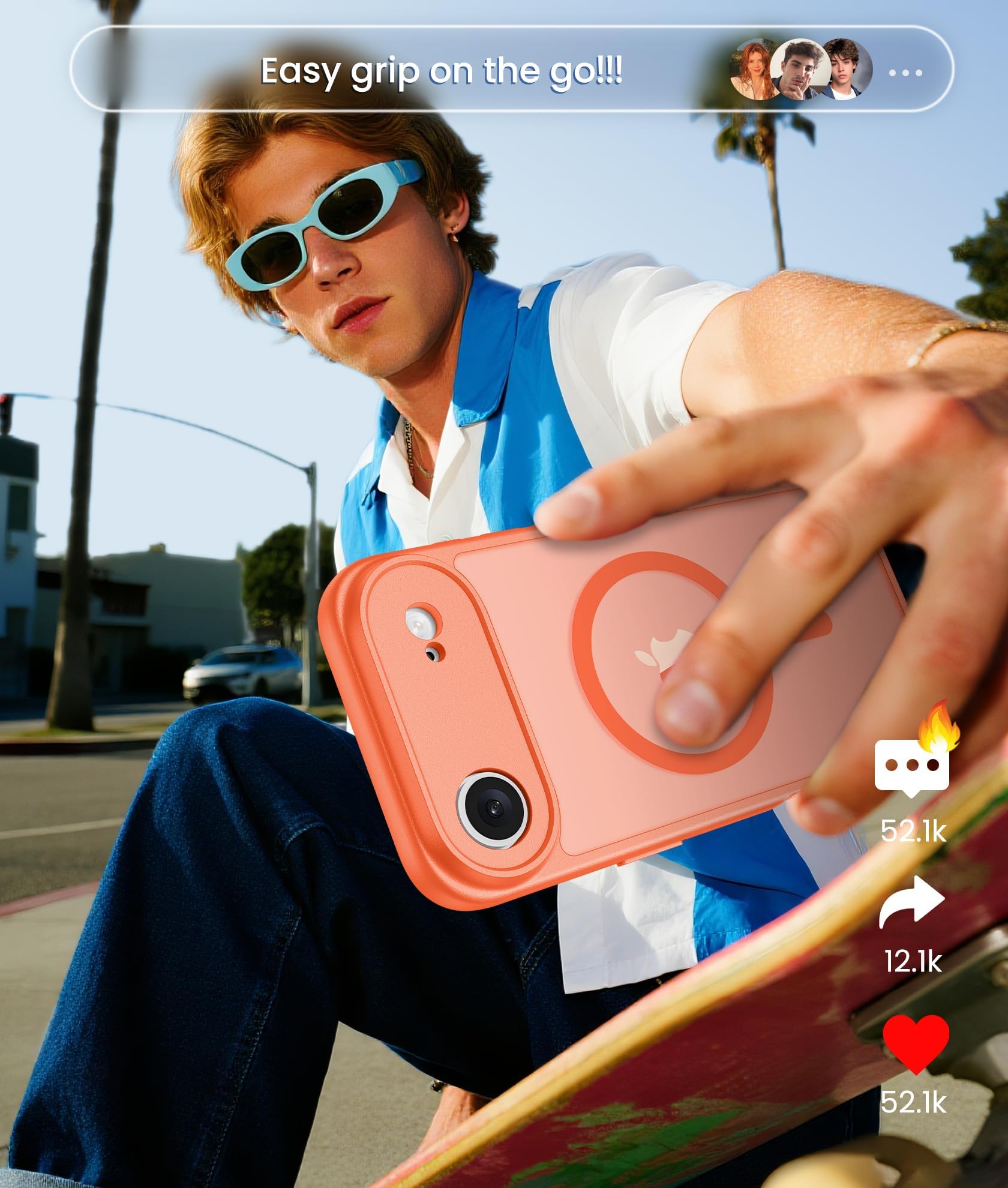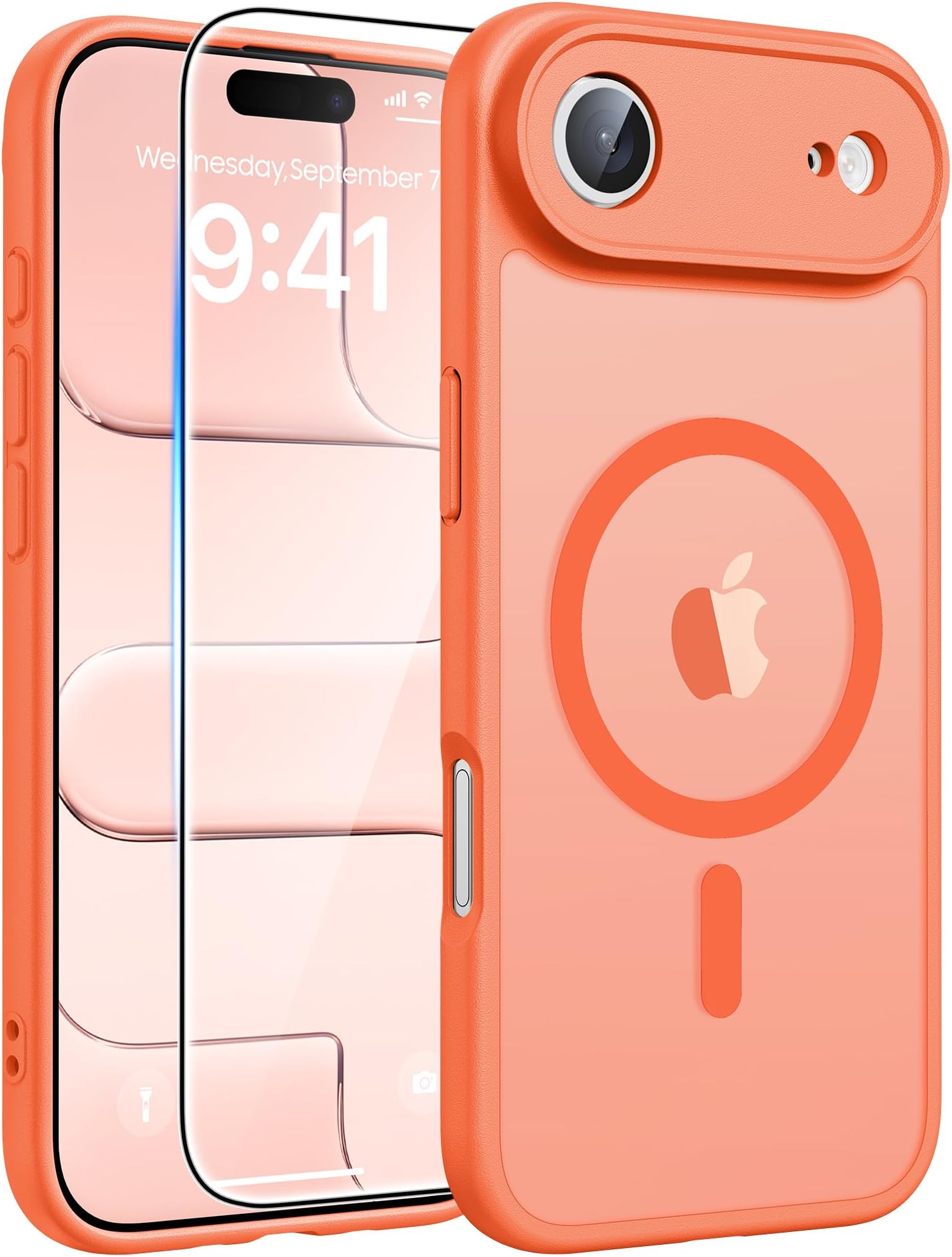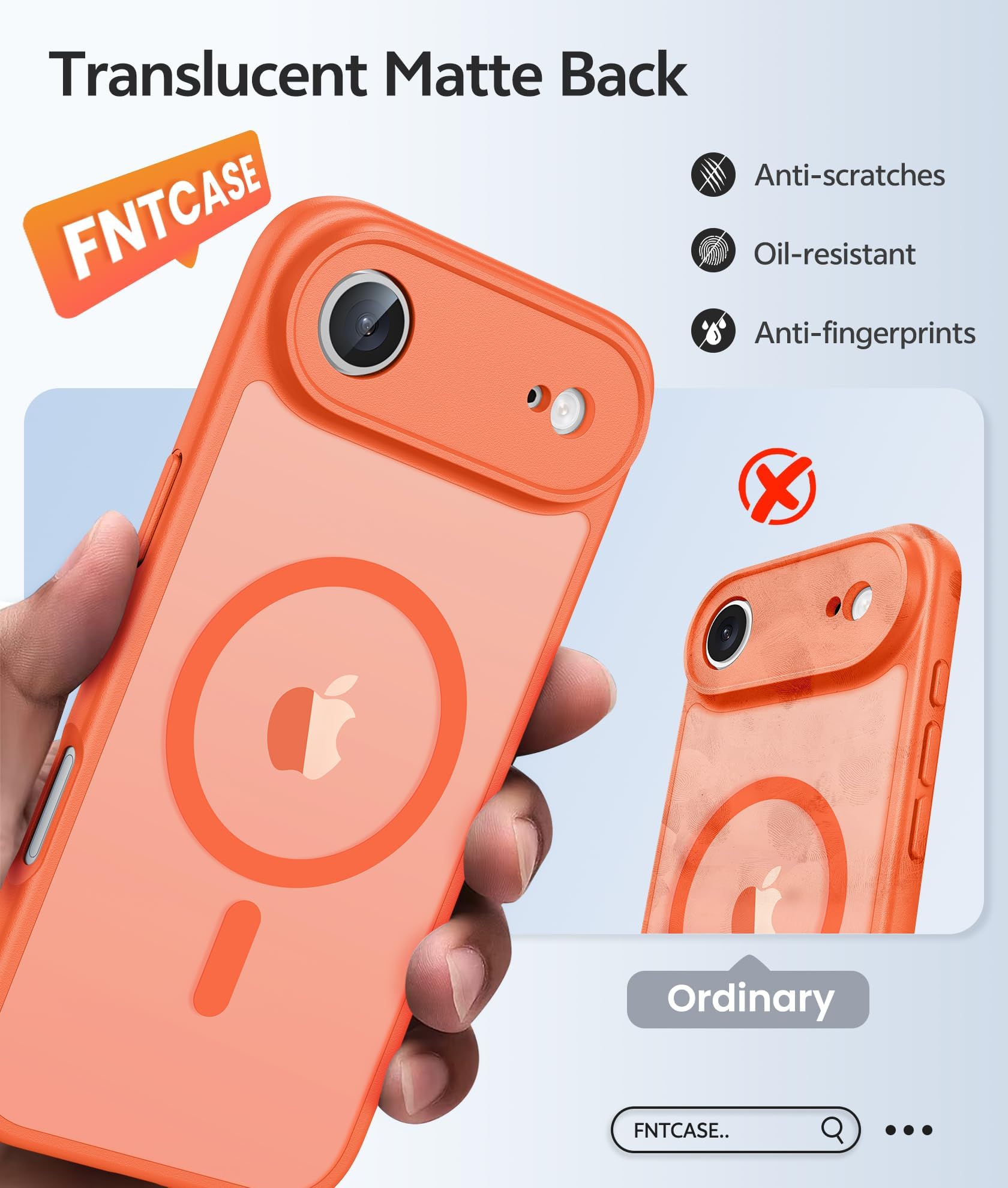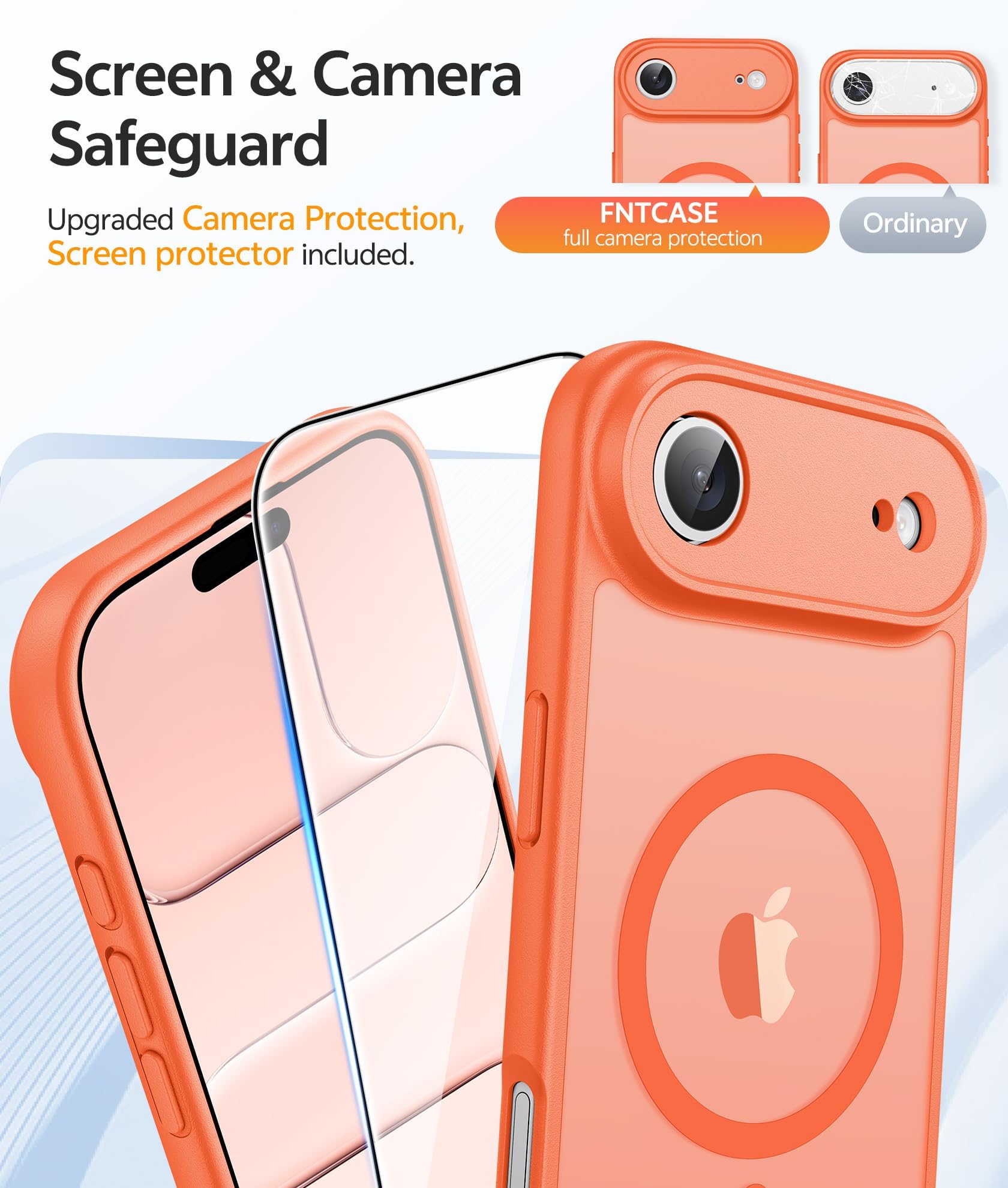 כיסוי FNTCASE לאייפון Air: [תואם ל-Magsafe] כיסויים שקופים מט עם [הגנה מלאה למצלמה] [מגן מסך] כיסוי מגן עמיד בפני זעזועים ברמה צבאית - כתום