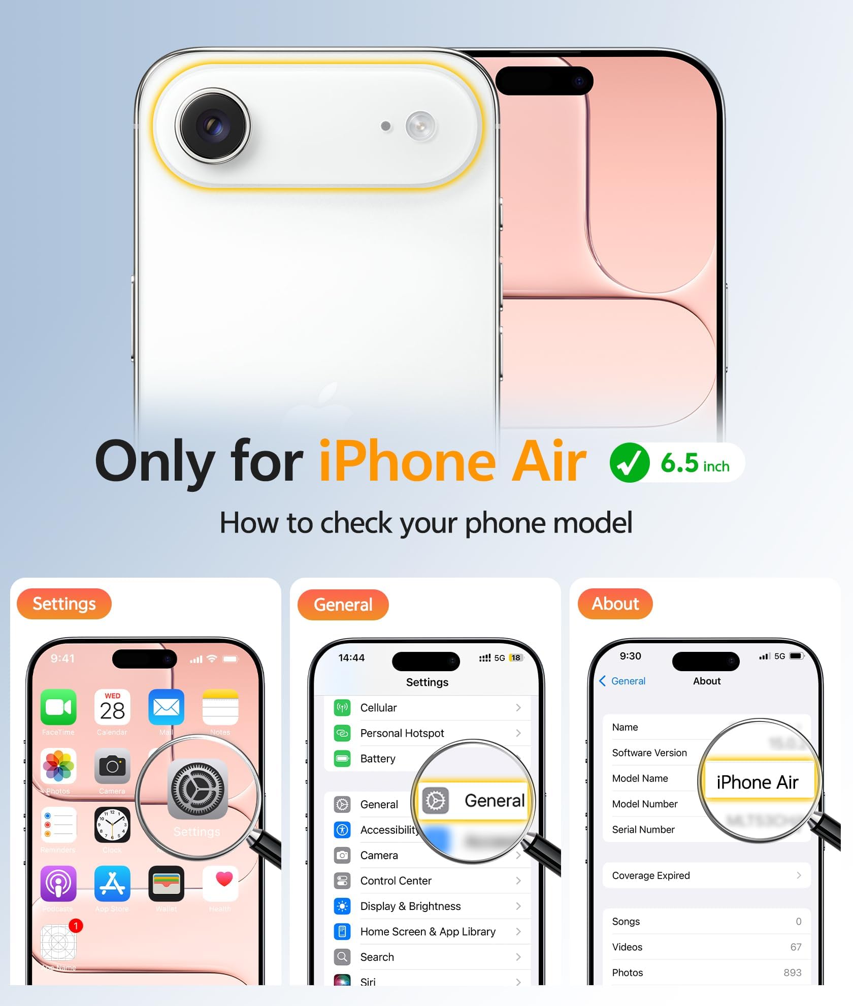 - הגנה על המצלמה: כיסוי עדשה משולב ייחודי שעוצב בקפידה. הוא מונע אבק, ניפוץ או שריטות ממצלמת האייפון אייר שלך. וצבע כיסוי המצלמה תואם למארז הטלפון, מה שנראה אחיד יותר.