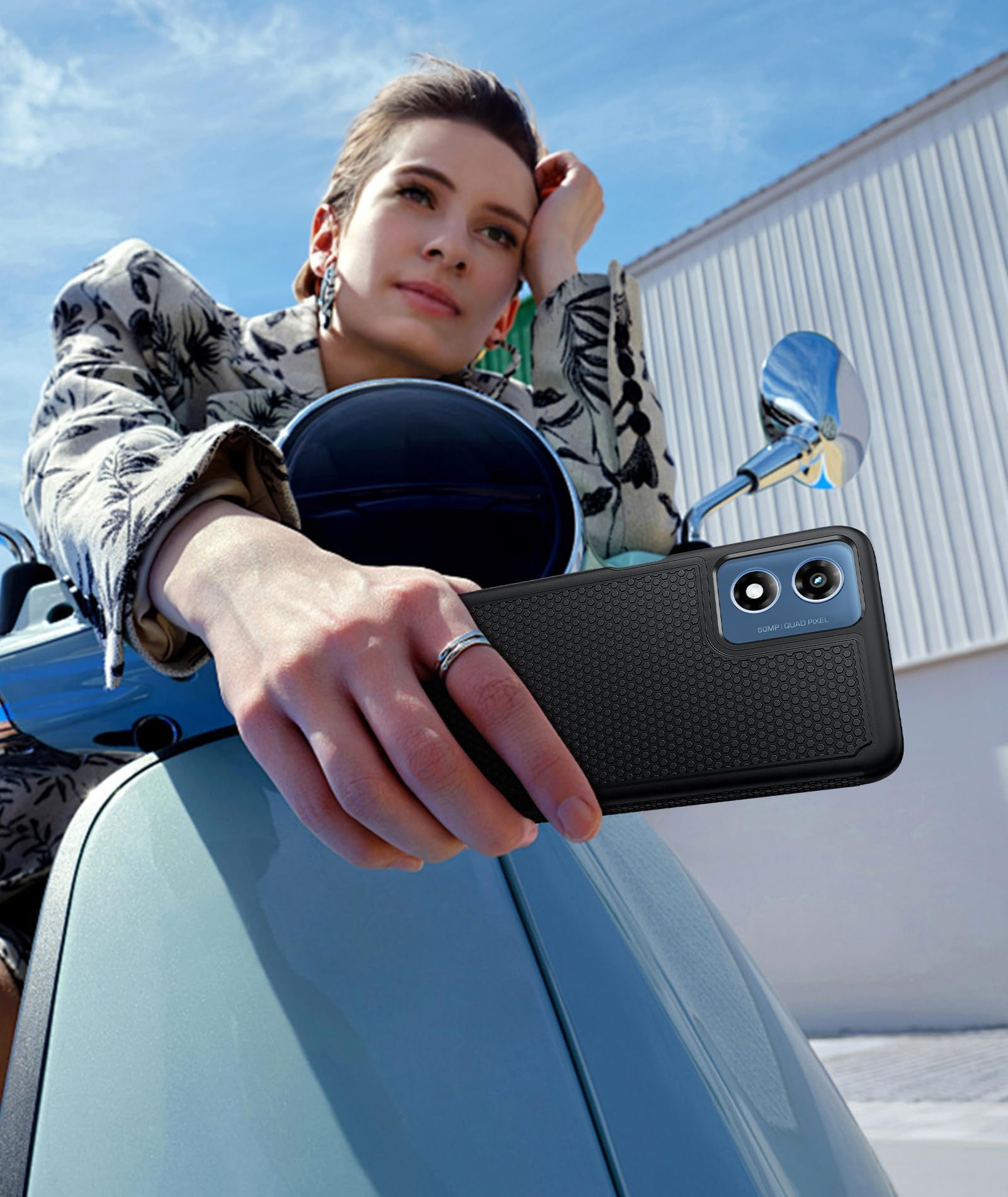 - מרקם נגד החלקה ואחיזה מעולה: המרקם התאי המשושה המונע החלקה המהונדס בדיוק על המגן האחורי מעניק אחיזה איתנה יותר ומונע מהטלפון הנייד שלך נפילות, מכות ובלאי בלתי צפויים בשימוש יומיומי. עמידות בפני טביעות אצבע
