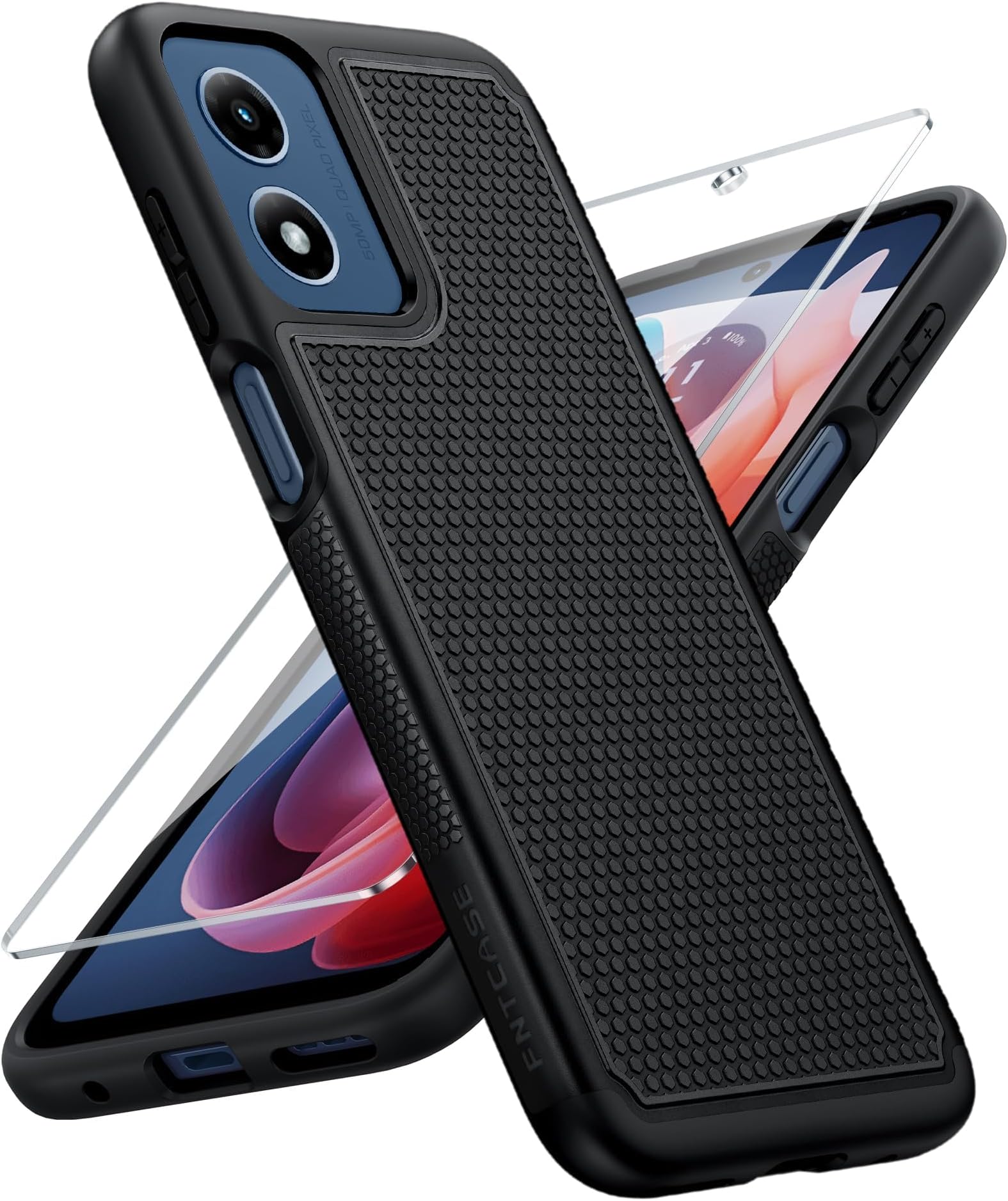 כיסוי FNTCASE למוטורולה מוטו G-Play-2024: כיסוי מגן כפול, עמיד בפני זעזועים, עמיד בפני החלקה וגב מחוספס - פגוש הגנה צבאי קשיח (שחור)