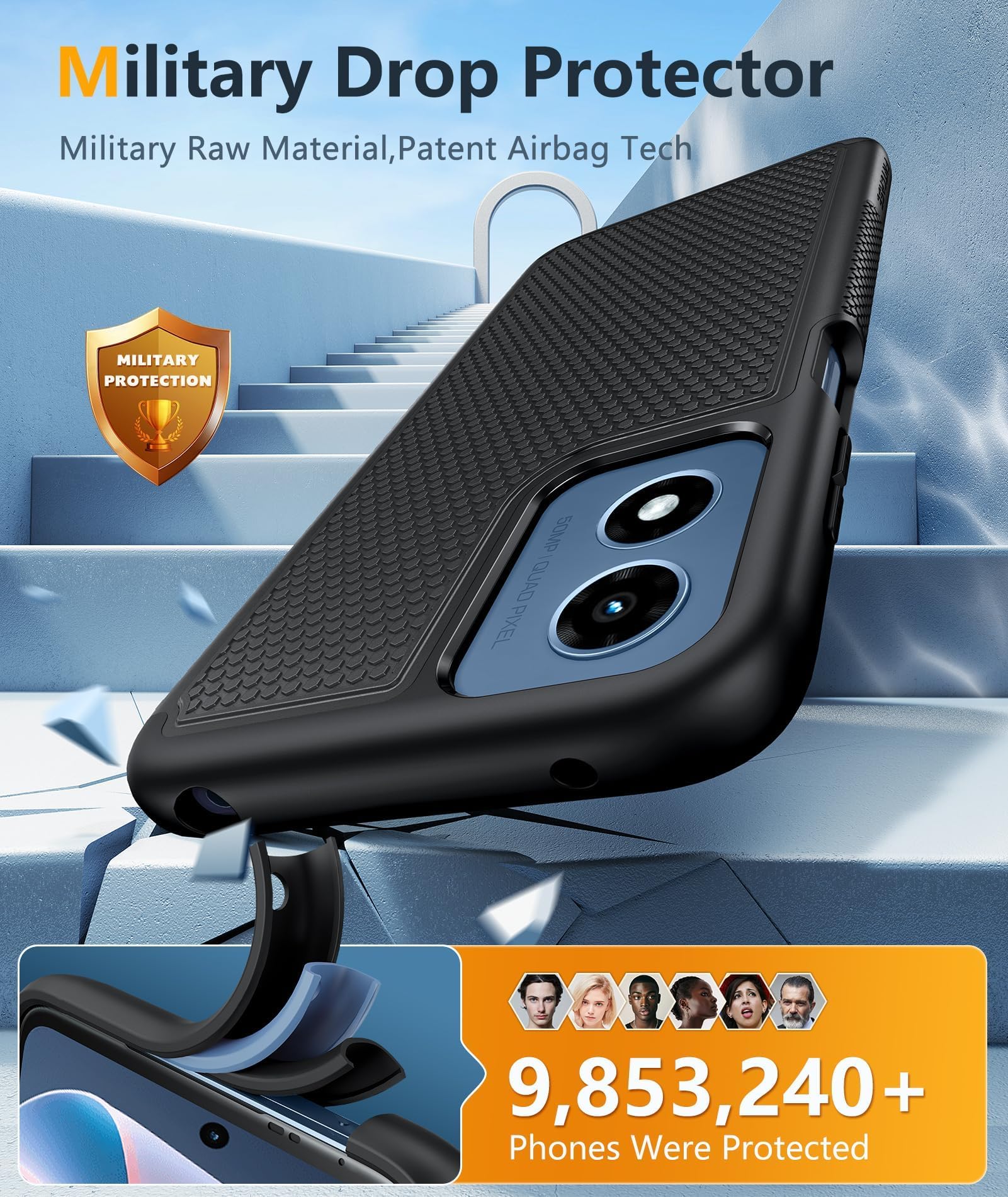 - הגנה על המצלמה ומסגרת מוגבהת לעמידות בפני שריטות: מסגרת מוגבהת של 1.5 מ"מ על המסך ו-2.0 מ"מ על עדשת המצלמה יכולים למנוע שריטות יומיומיות בעת הנחת הטלפון הנייד עם הפנים כלפי מטה