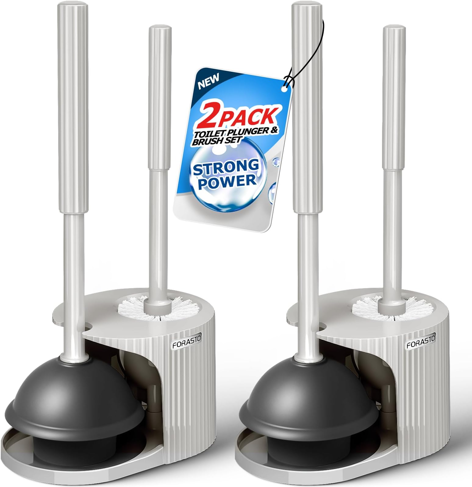 FORASTO 2 חבילות סט בוכנה ומברשת לאסלה 2 ב-1, בוכנה עם ידית מורחבת, סט בוכנה לאמבטיה, כלי ניקוי לחדר אמבטיה, מברשת ניקוי, בוכנה משולבת לאסלה, אפור קרם (21 אינץ')