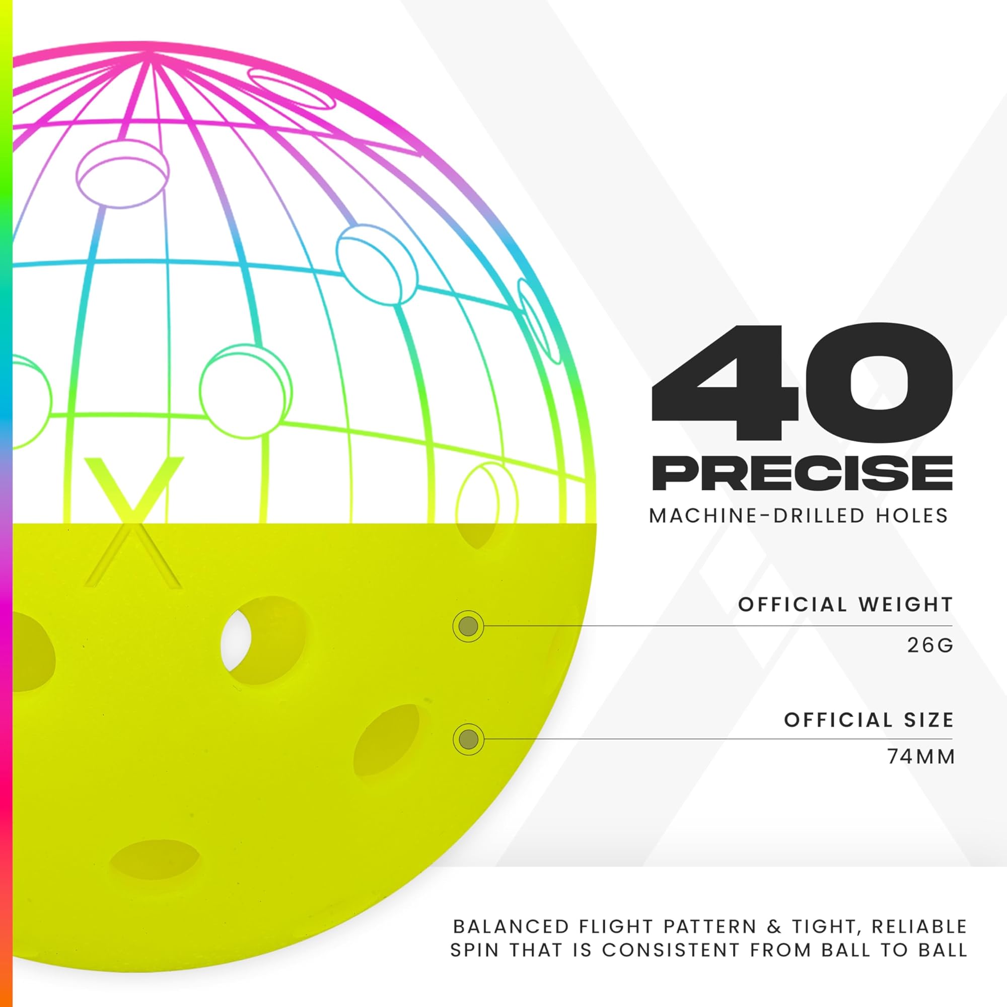 כדורי חמוץ חיצוניים של Franklin Sports Neon X-40 - כדורי חמוץ רשמיים של USAPA - כדורי חמוץ חיצוניים בגודל תקין - כדורי חמוץ רשמיים של US Open - Vellum Neon - חבילה של 6