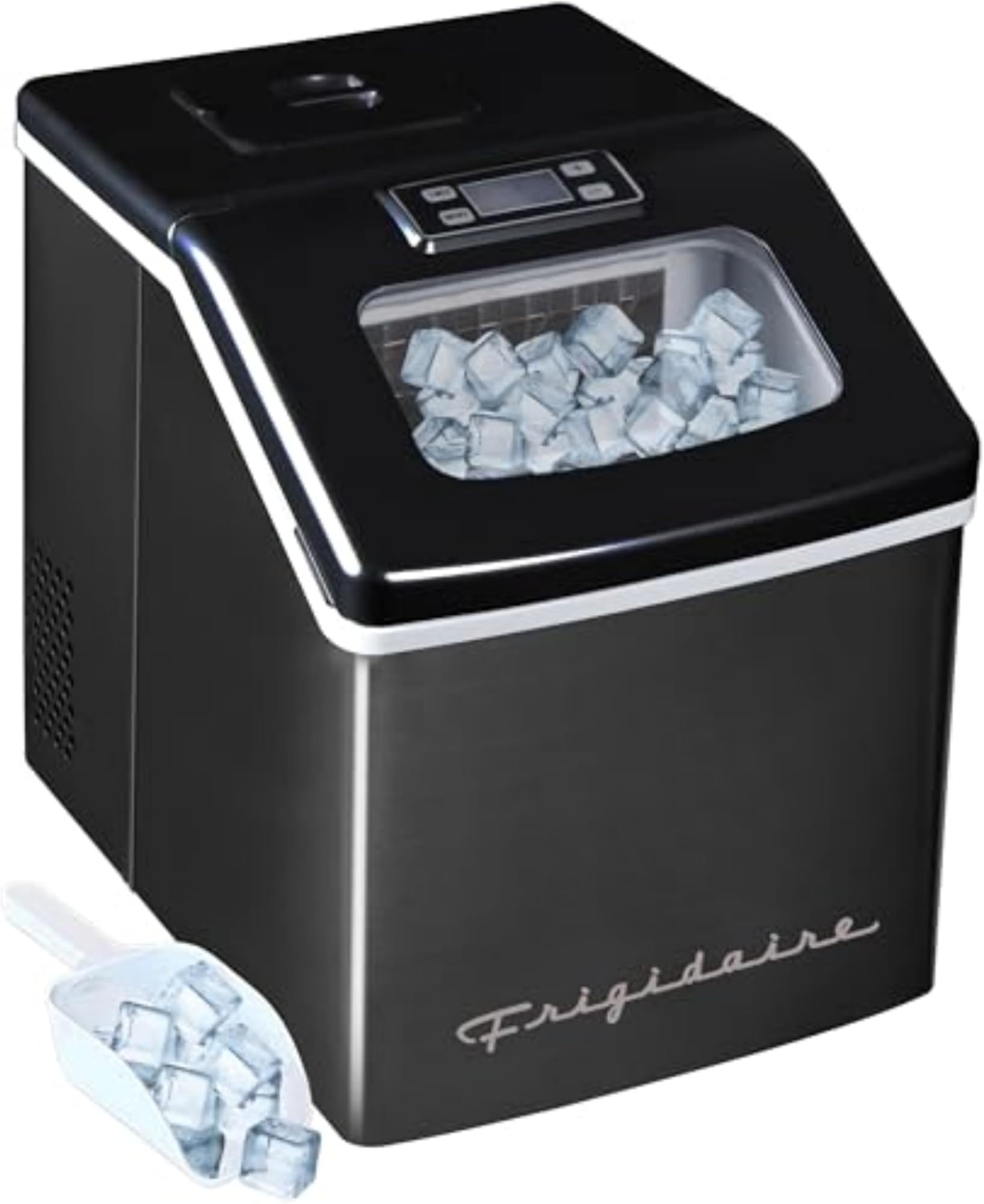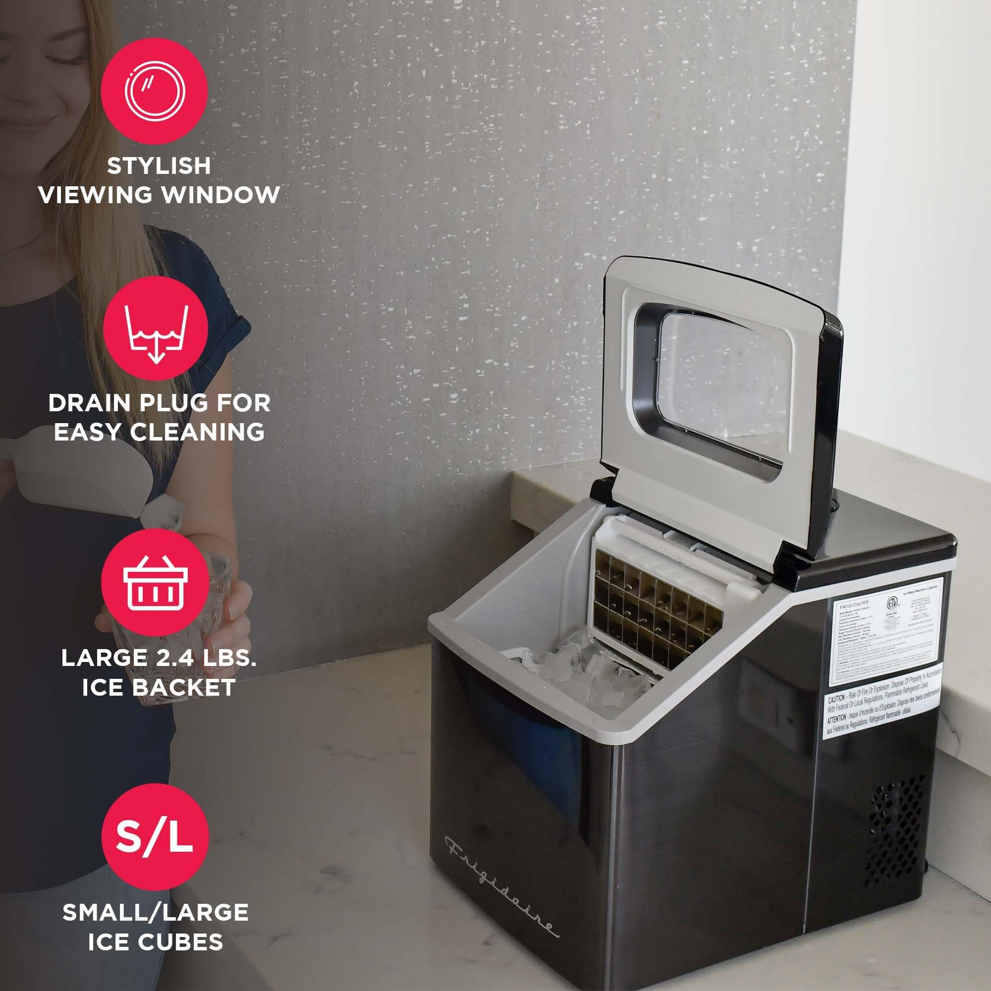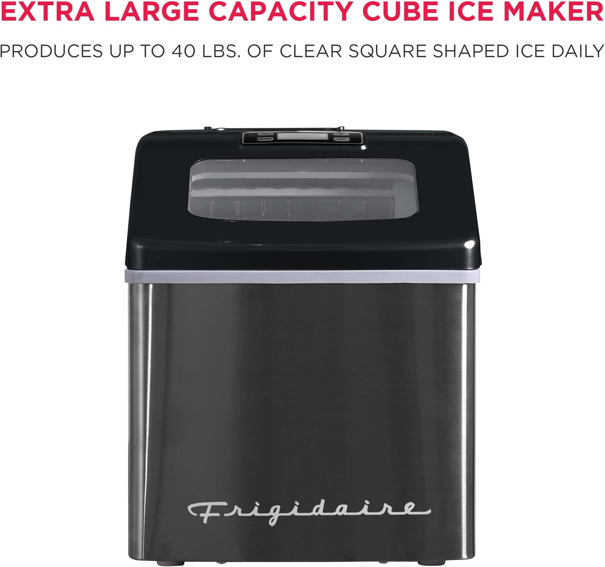 מכונת קרח Frigidaire EFIC452, מכונת קרח מפלדת אל-חלד על הדלפק עם חלון שקוף, מכונת קוביות קרח שקופה עם קיבולת של 18 ק"ג, מכונת קרח - עומק 34 ס"מ, רוחב 28 ס"מ, גובה 34 ס"מ (שחור)