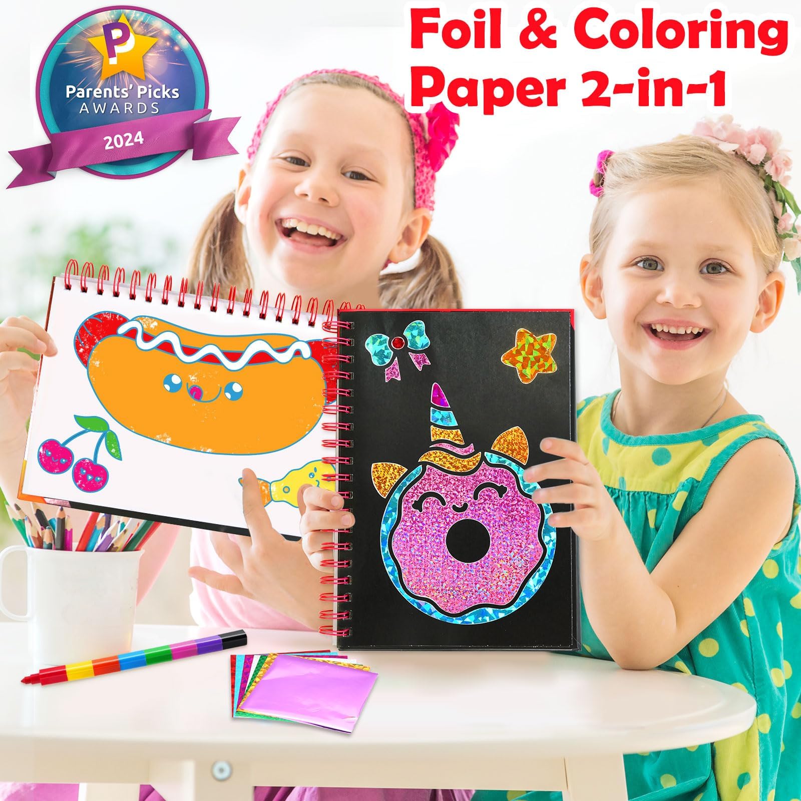 FUNNYB&G אמנות נייר כסף יצירה לילדים - מתנת יצירה לחג המולד מתנות למסיבה מתנות גרביים לילדים ציוד אמנות מהנה מתנת יום הולדת יצירתית צעצועי נסיעות לבנות בנים 4 5 6 7 8 9 שנים (אוכל)
