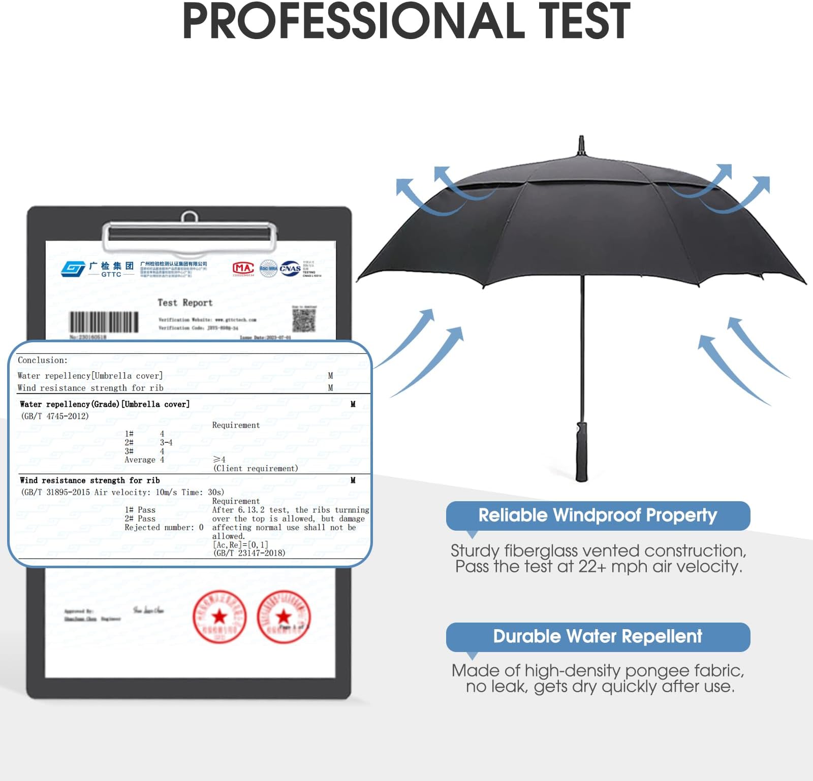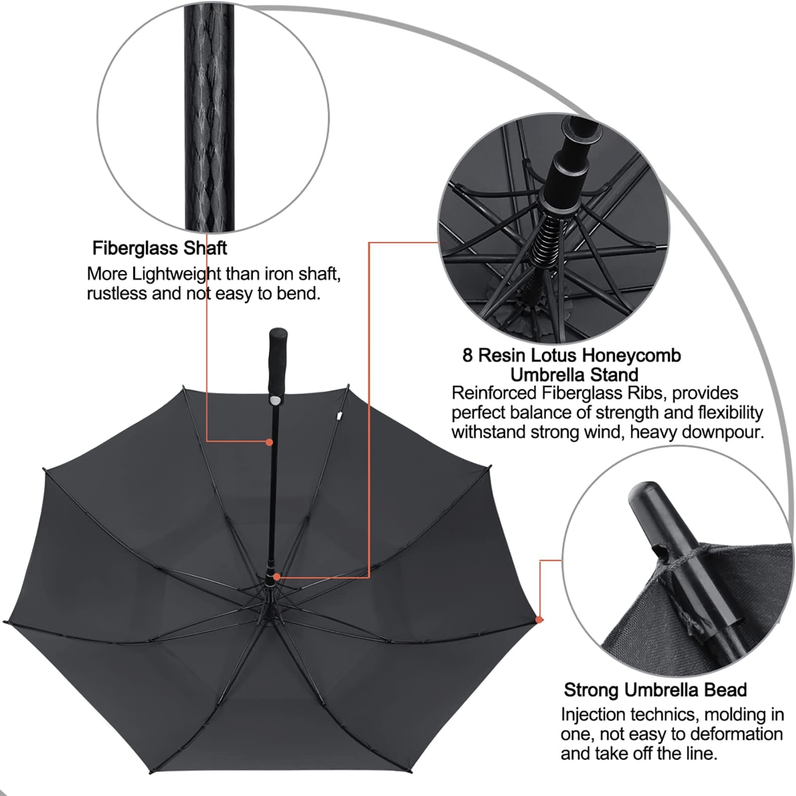 - לא תתאהבו. עיצוב החופה הכפולה ומסגרת הפיברגלס יבטיחו שהמטריה שלכם תהיה אטומה לחלוטין לרוח. רוח פשוט לא תשבור אותה. עיצוב החופה הכפולה יוצר פתח אוורור שדרכו הרוח יכולה לעבור, מה שהופך את המטריה להרבה יותר קלה לטיפול בתנאים קשים.