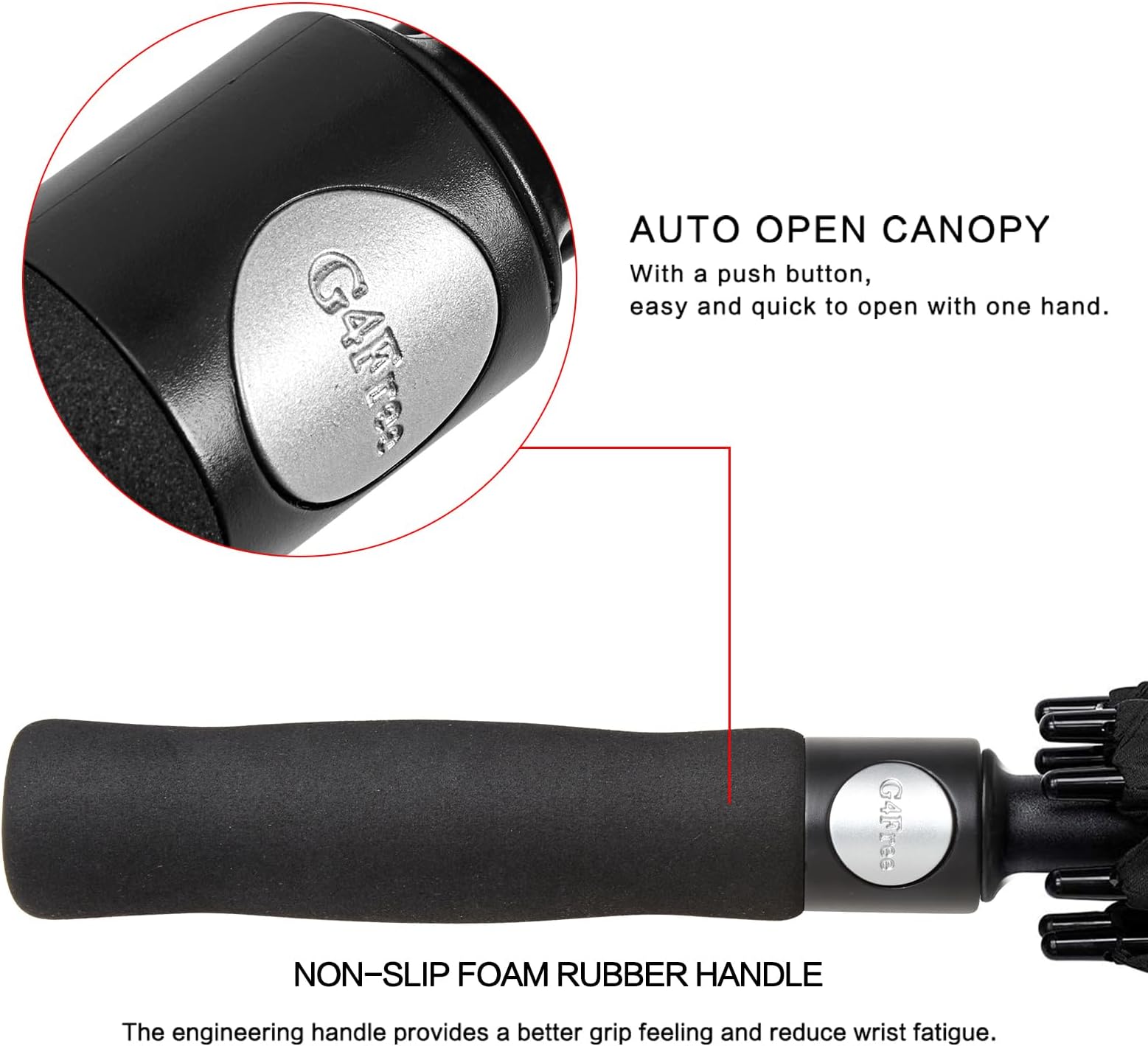 - מטריית הגולף האולטימטיבית עם גגון בגודל 47/54/62/68 אינץ' ועיצוב עמיד, מטריית הגולף G4Free Ultimate היא בת לוויה אידיאלית עבור גולפאים ואנשי עסקים, או לחיי היומיום. עם העיצוב השחור החלקלק שלה, אחיזת EVA נוחה, מסגרת יציבה ומנגנון פתיחה אוטומטי, מטריות הגולף G4Free Ultimate מושלמות בעיר מטרופולין או במגרש ספורט!