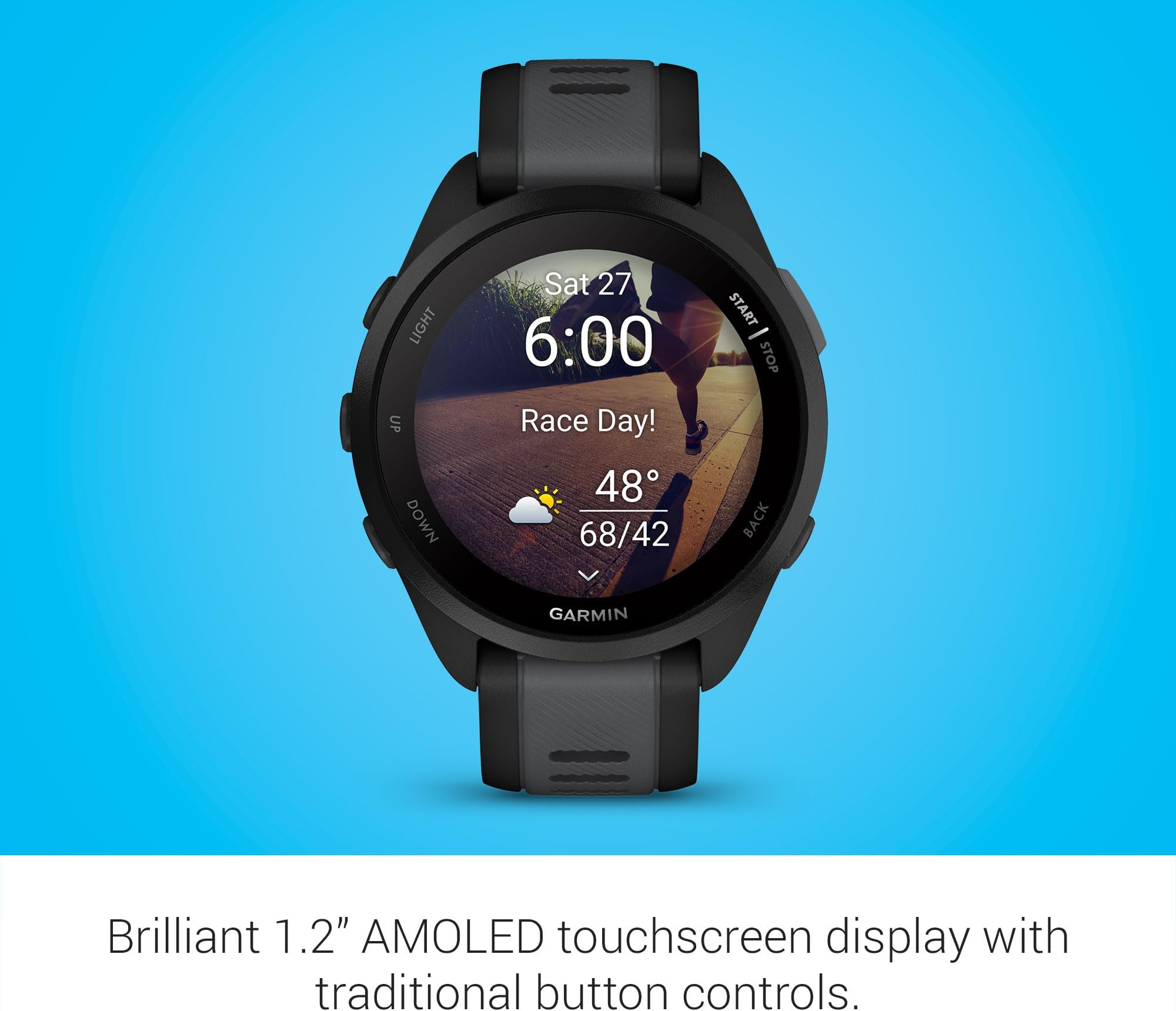 Garmin Forerunner 165, Running Smartwatch, Colorful AMOLED Display, Training Metrics and Recovery Insights, Black
