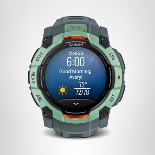 Garmin Instinct® 3 50mm, AMOLED Display, Rugged Outdoor GPS Smartwatch, Metal-Reinforced Bezel, Built-in Flashlight, Up to 18 Days of Battery Life, Neo Tropic/Twilight