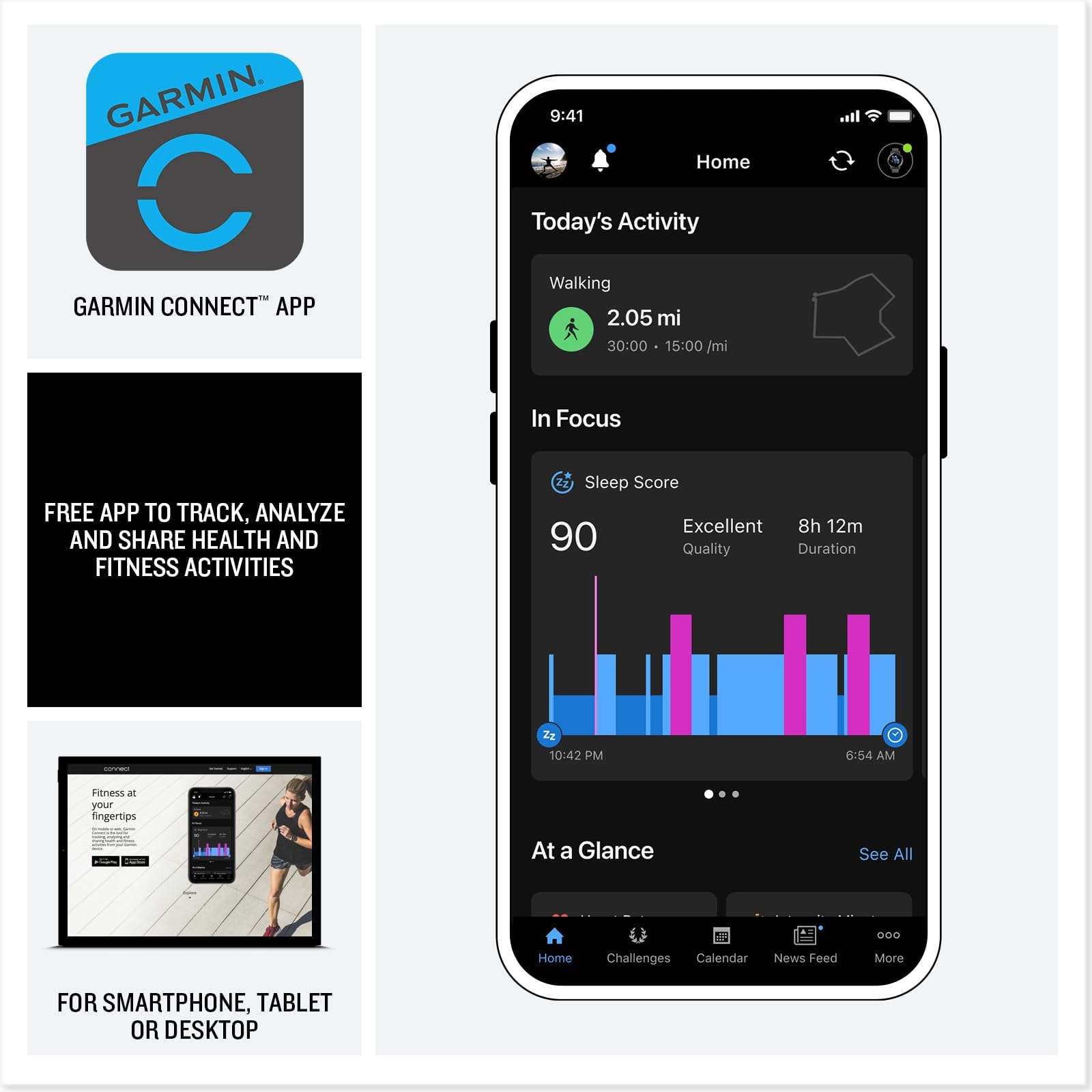 - Stay connected with smart notifications (when paired with your compatible smartphone) and Connect IQ Store compatibility, which allows you to download new apps and watch faces