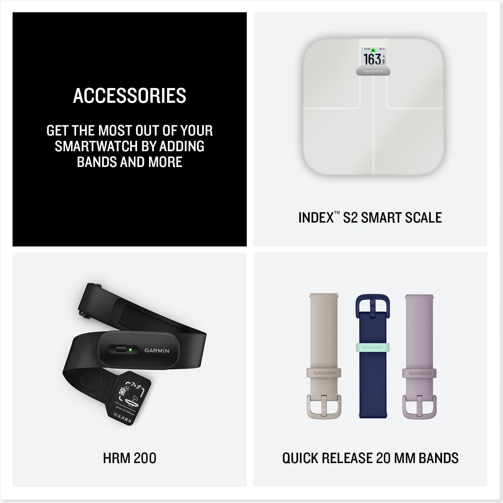 - Body Battery energy monitoring helps you understand when you’re charged up or need to rest, with even more personalized insights based on sleep, naps, stress levels, workouts and more (data presented is intended to be a close estimation of metrics tracked)