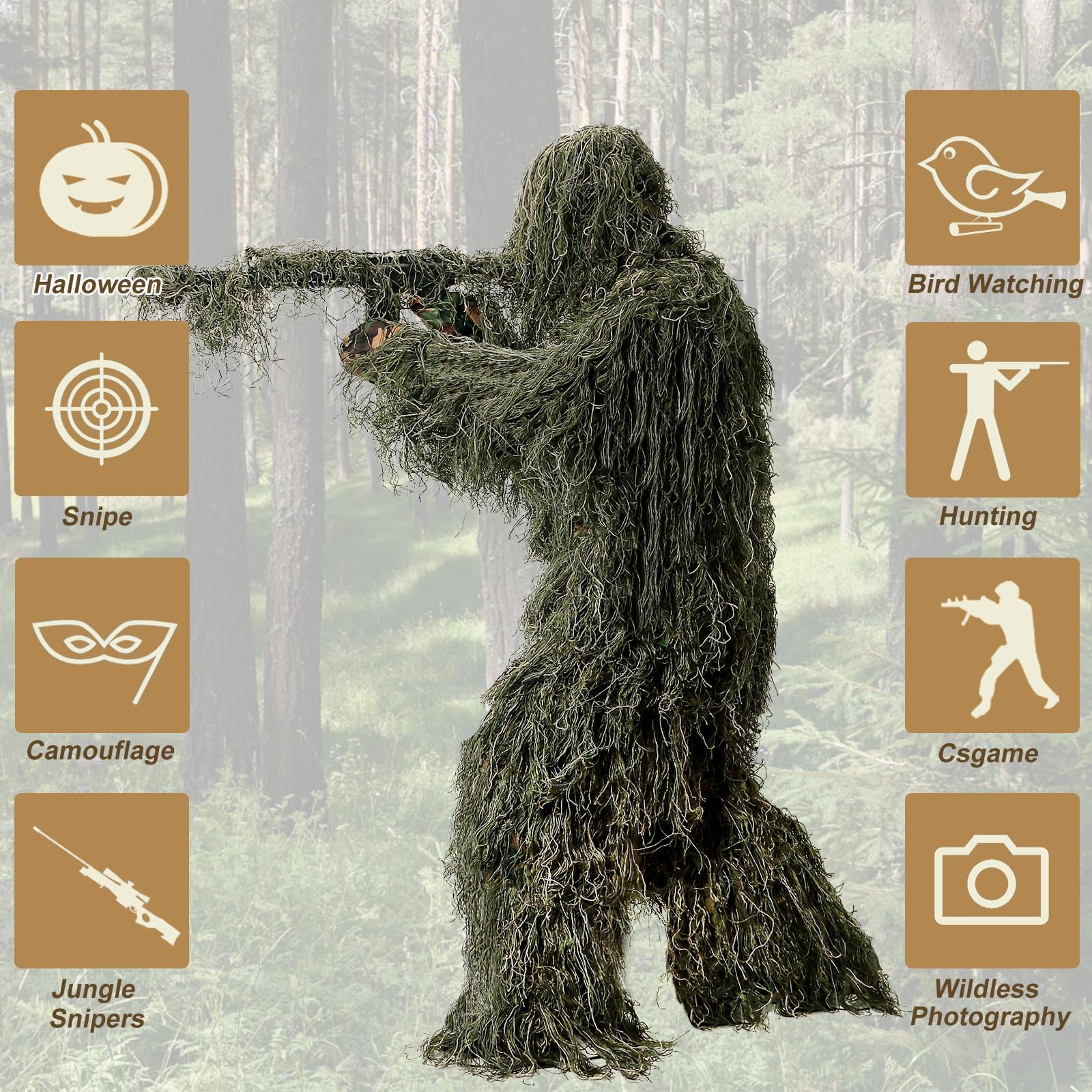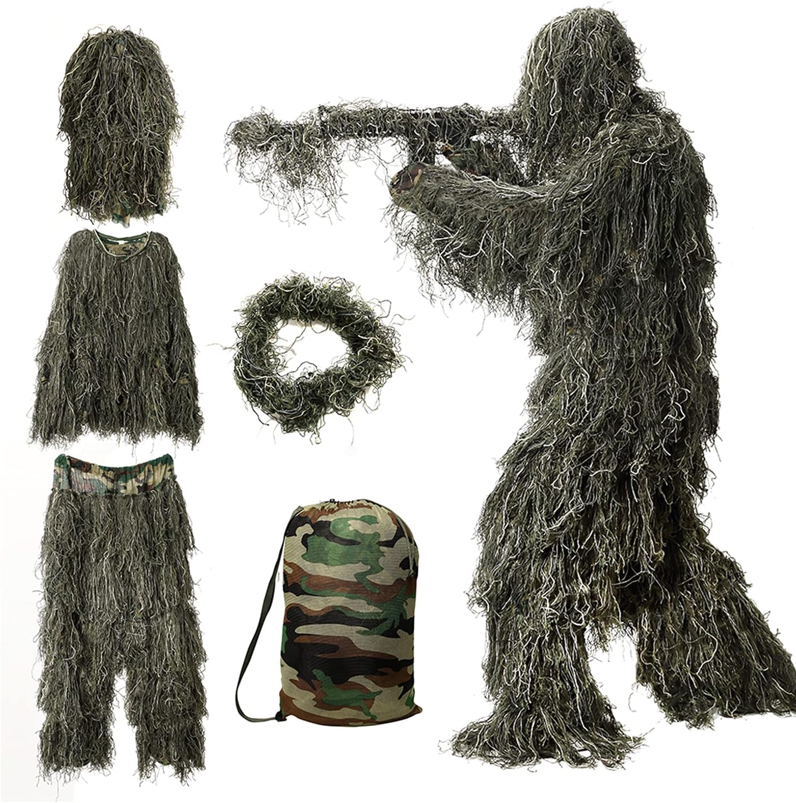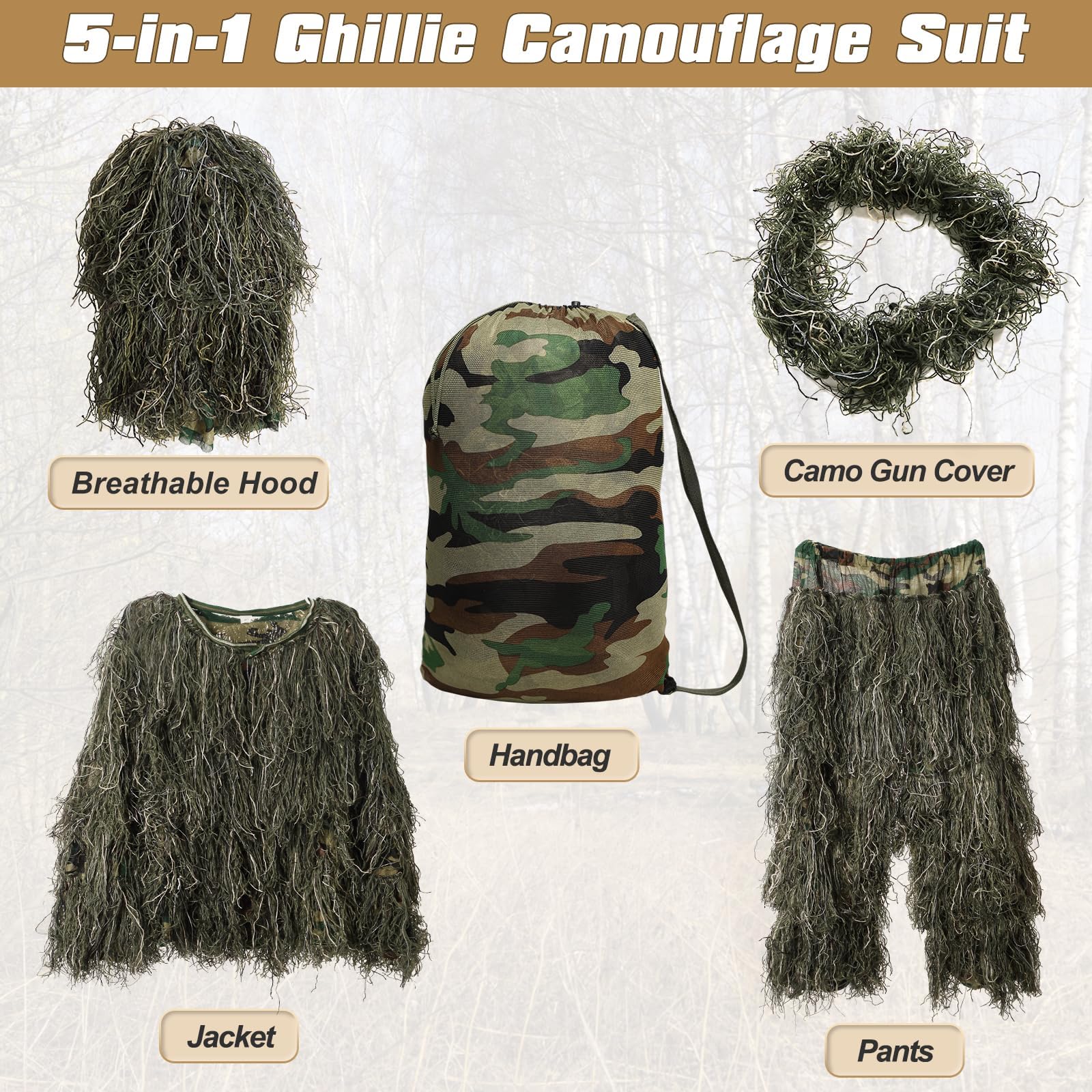חליפת גילי לגברים, חליפת גילי 5 ב-1, בגדי הסוואה מעולים לילדים/נוער, ציידים, צבא, צלפים, איירסופט ופיינטבול