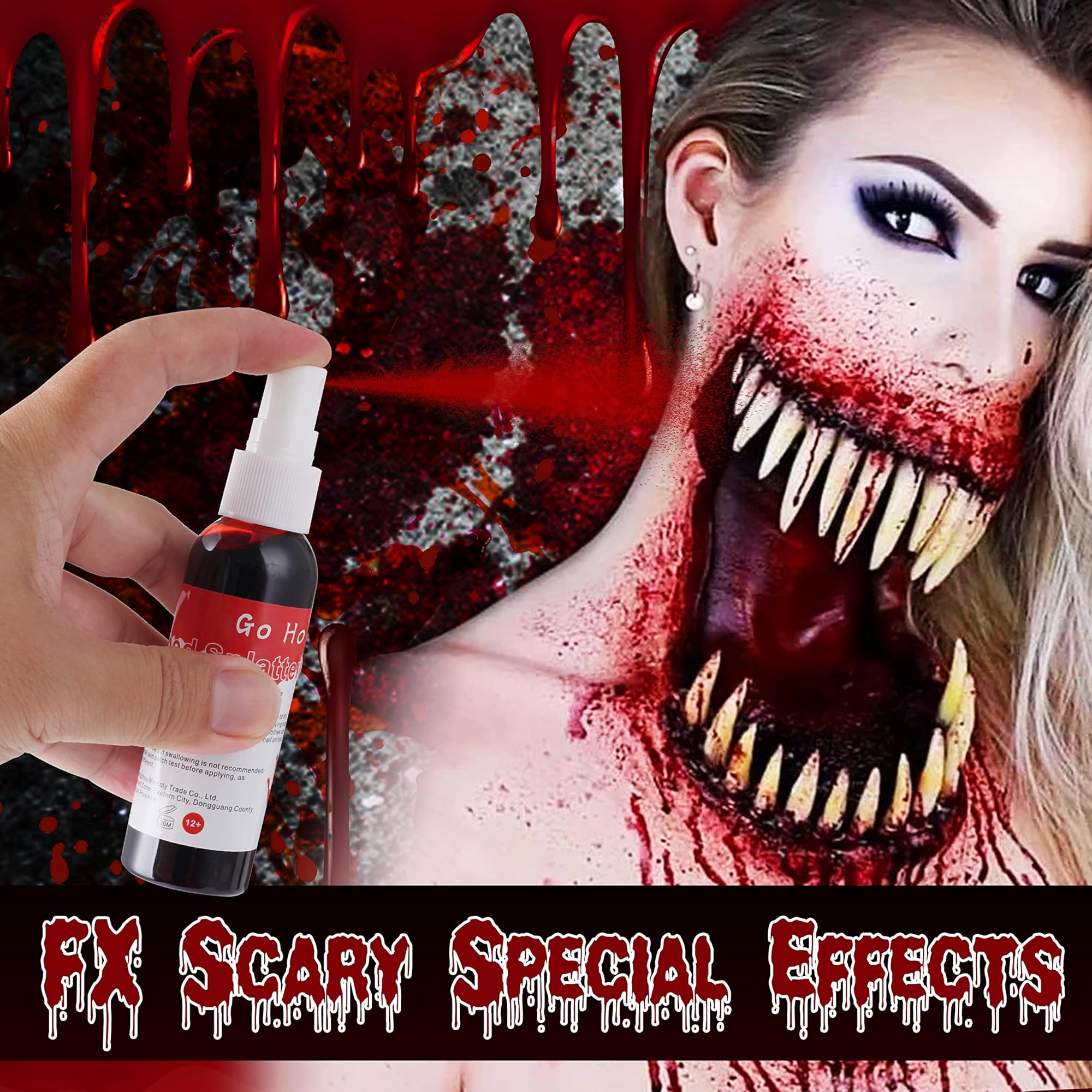 - 【צור התזות דם מפחידות לאיפור SFX】 השתמשו לאחר מריחת איפור כדי להוסיף אפקטים ופרטים של דם. יצירת אפקטים של התזות דם בקלות. החזיקו את הפנים במרחק מסוים בהתאם לסוג ה"התזה" הרצויה, רססו הרחק מעצמכם לקבלת אפקט התזה; ריסוס קרוב יותר יכול ליצור טיפות SFX שיבכו דם.