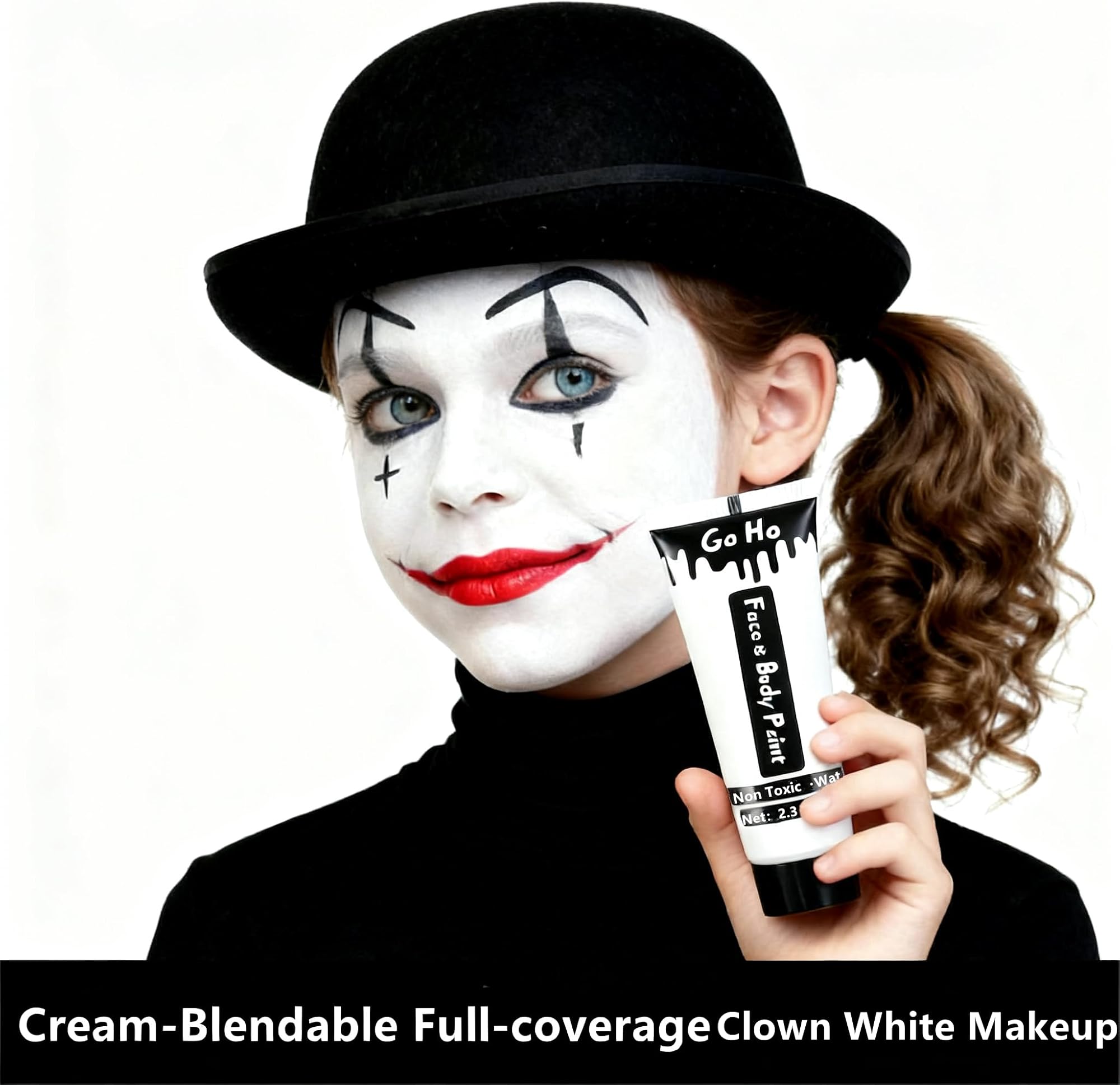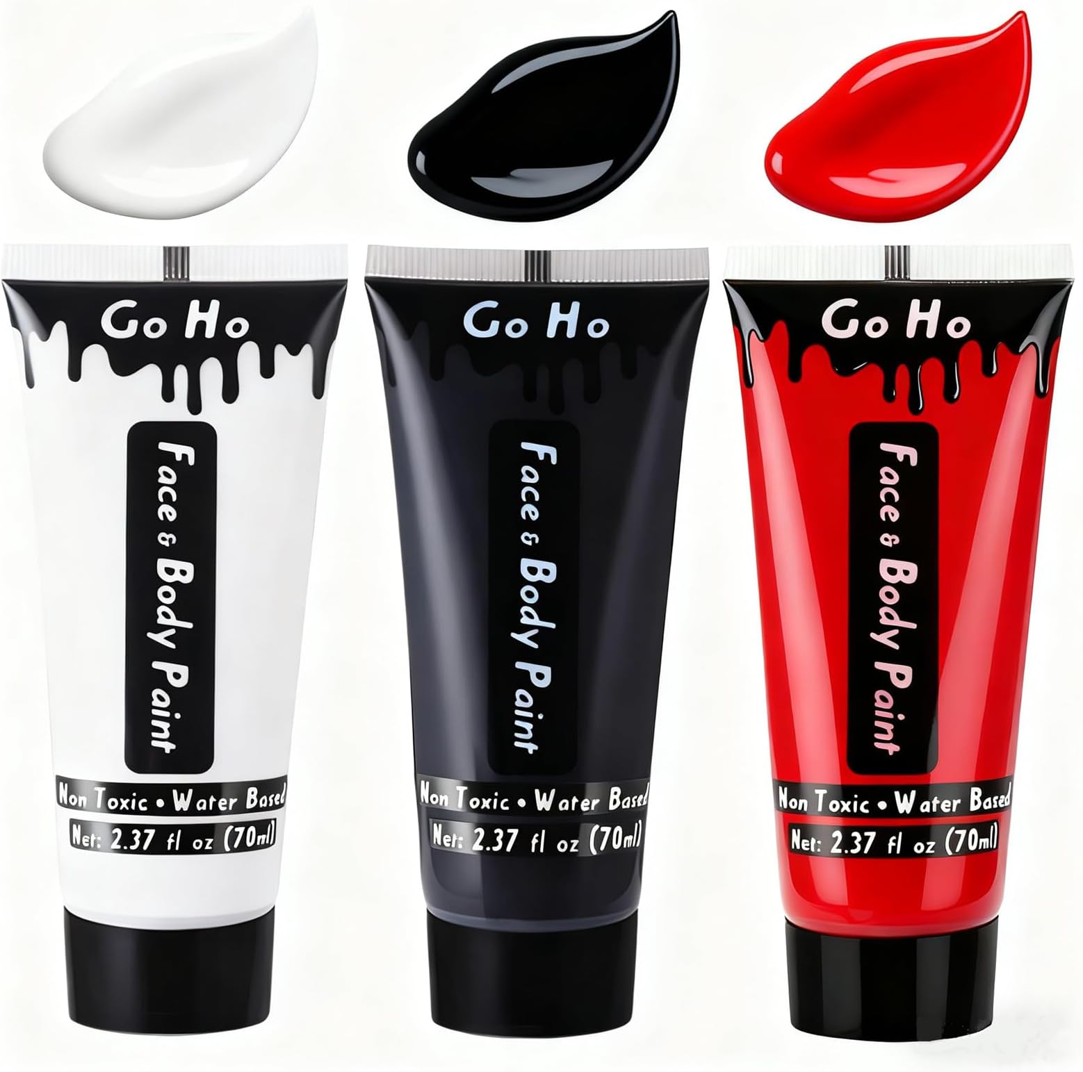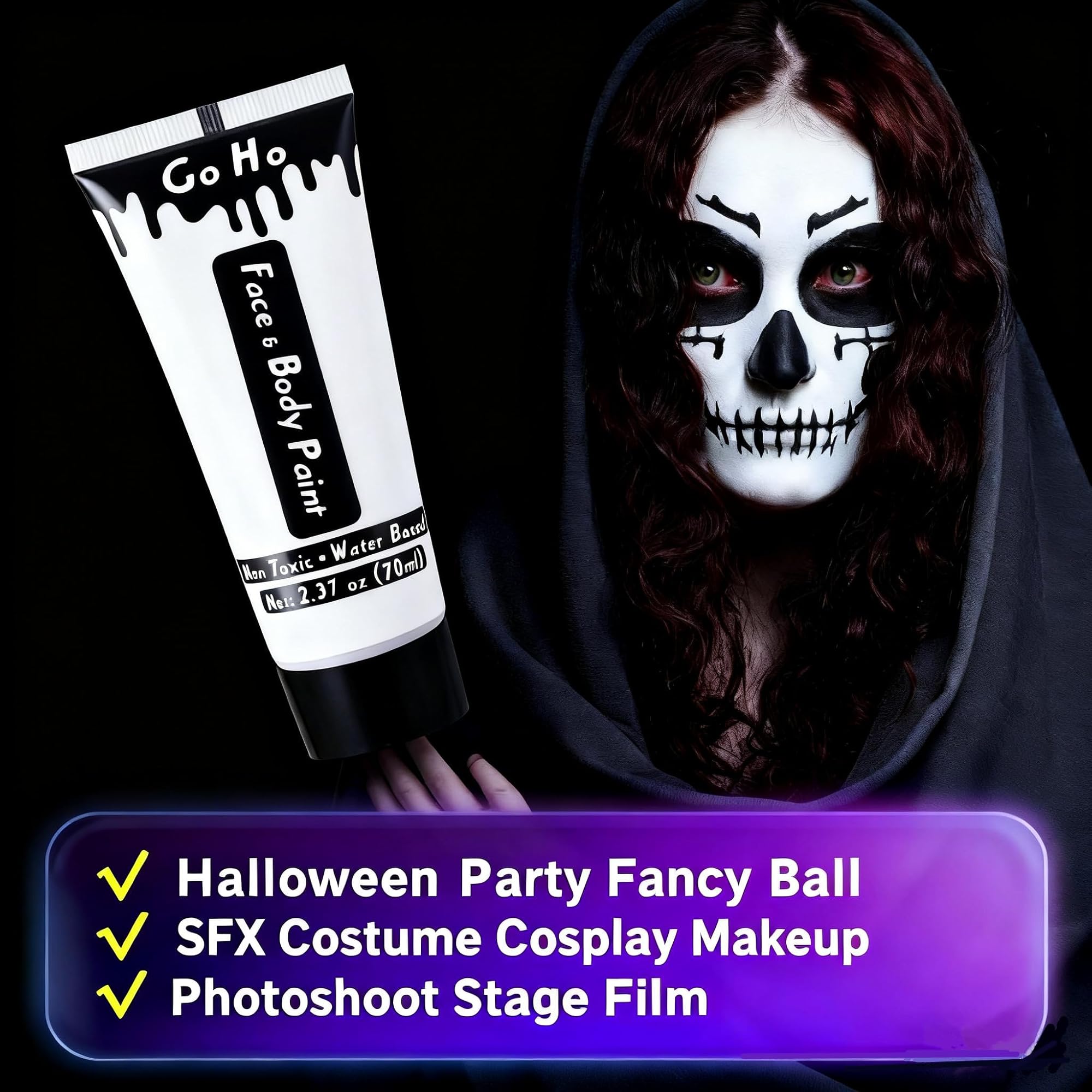 גו הו צבע גוף לבן שחור אדום רחיץ (7 oz) לאיפור ליצן, צבע גוף קרם לבן שחור ערפד שלד ליצן על בסיס מים לתחפושות ליל כל הקדושים קוספליי איפור SFX