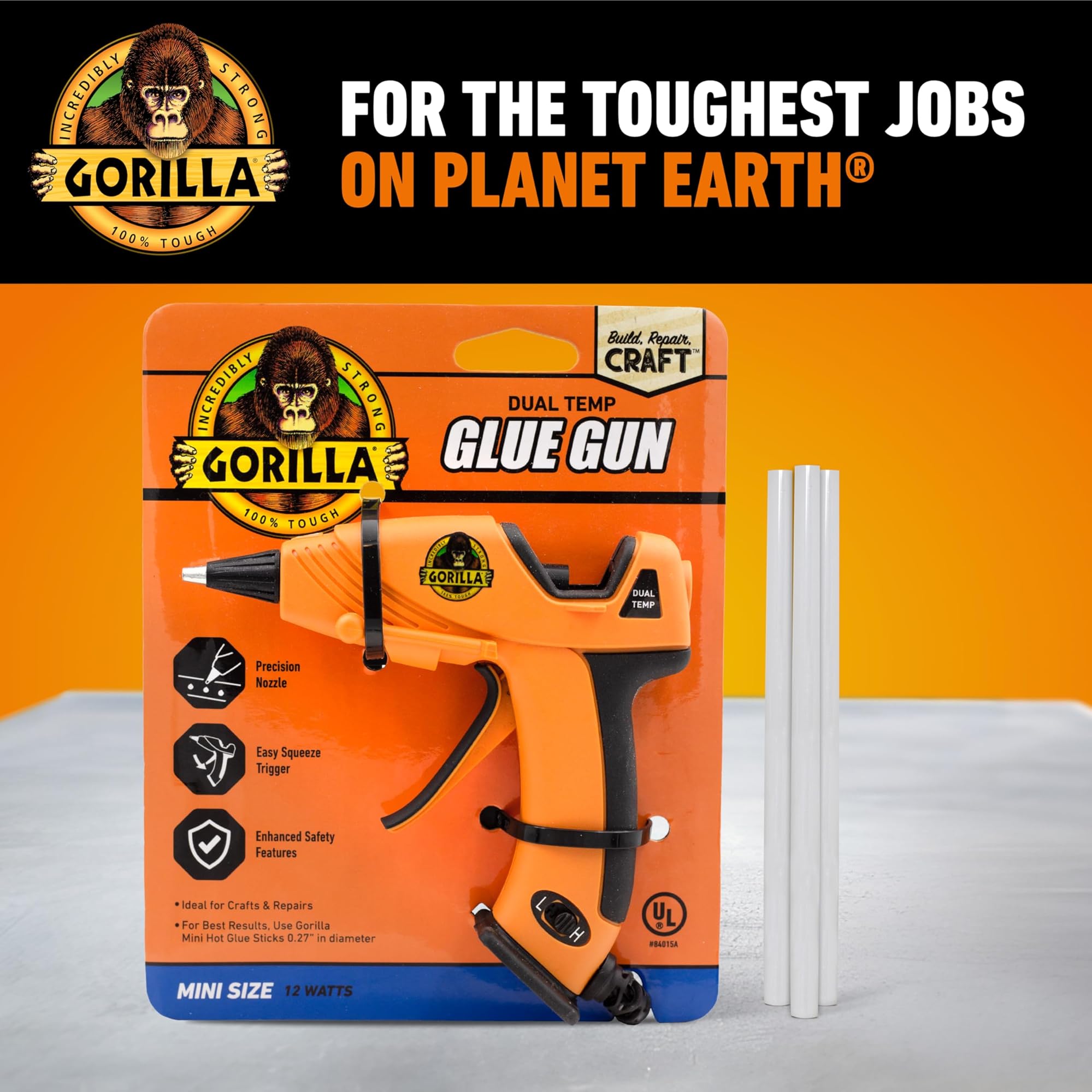 סט אקדח הדבק החם Gorilla Dual Temp Mini ומקלות הוא כלי אידיאלי ליצירות ותיקונים ותוספת לחדר היצירה שלכם. הוא קל משקל, עם אחיזה נוחה ומעמד מובנה המקל על השימוש. הדק קל ללחיצה והפיה הארוכה המבודדת מאפשרים יישום מדויק בכל פרויקט עליו אתם עובדים.