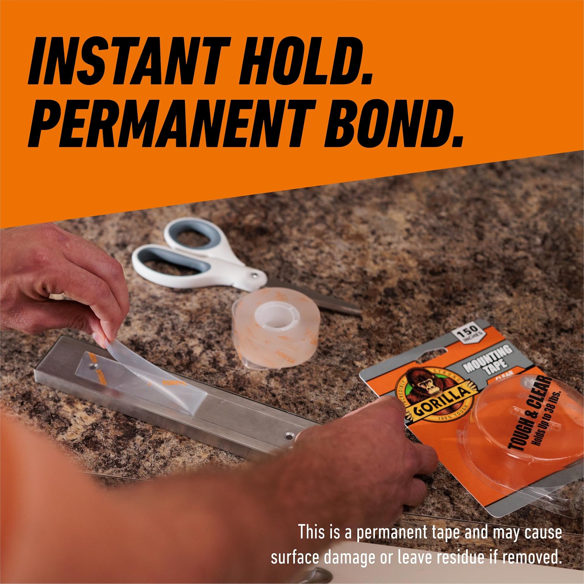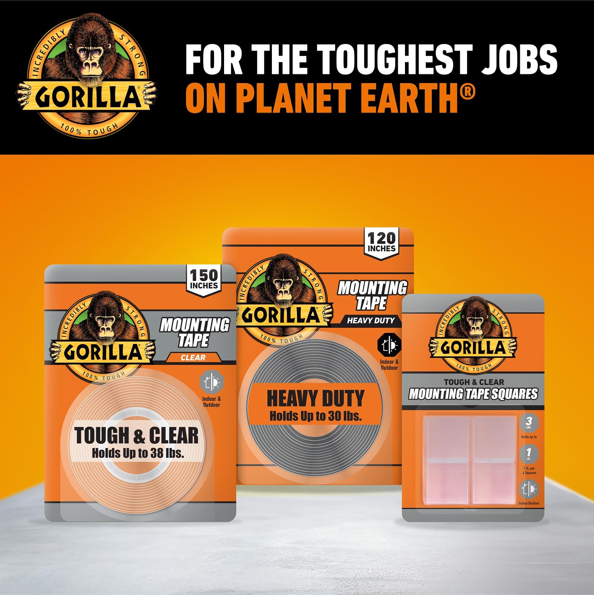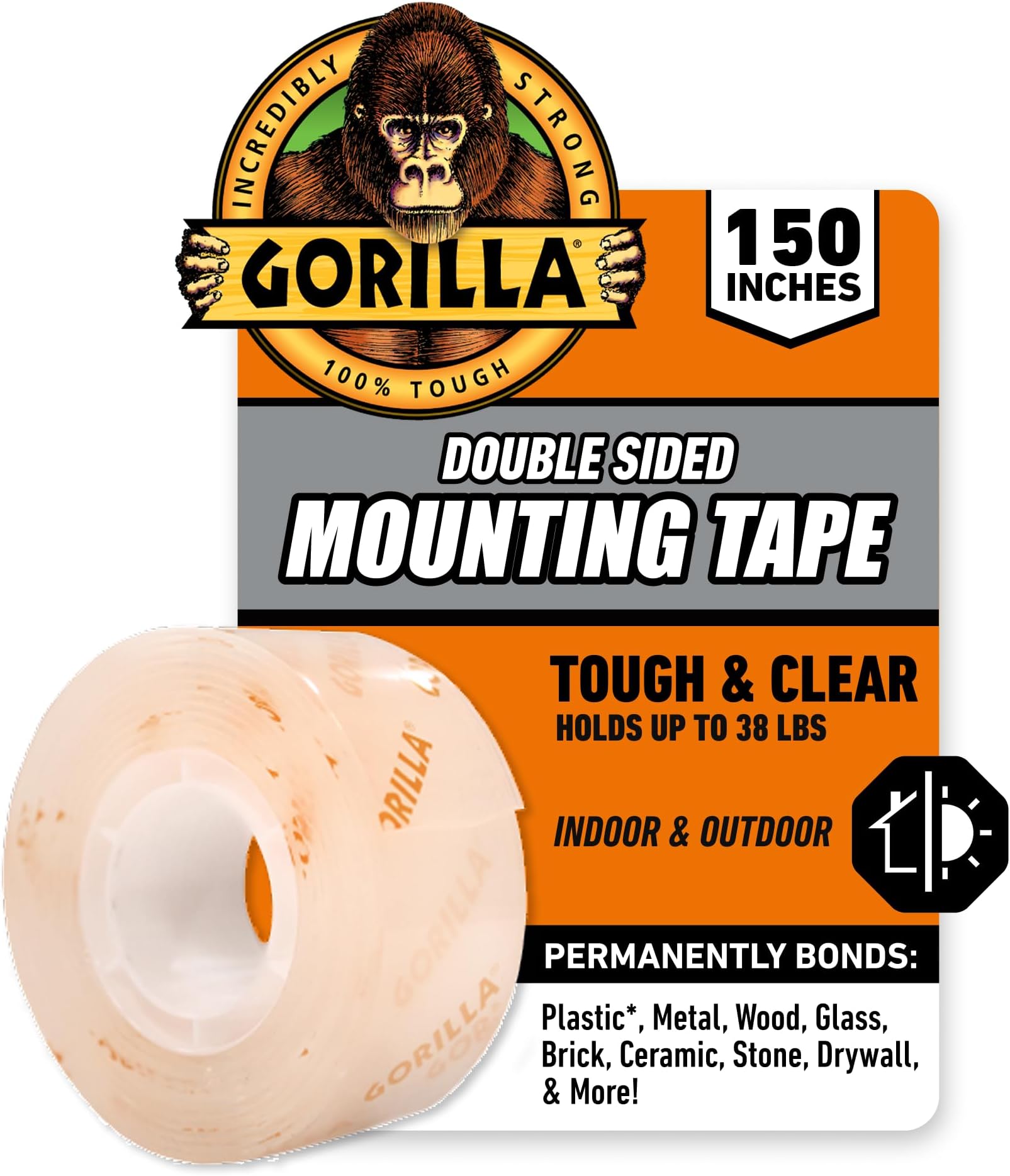 סרט התקנה דו צדדי Gorilla Tough & Clear, סרט שקוף, 1 אינץ' x 150 אינץ' (חבילה של 1) - עמיד בפני מזג אוויר לשימוש פנימי או חיצוני