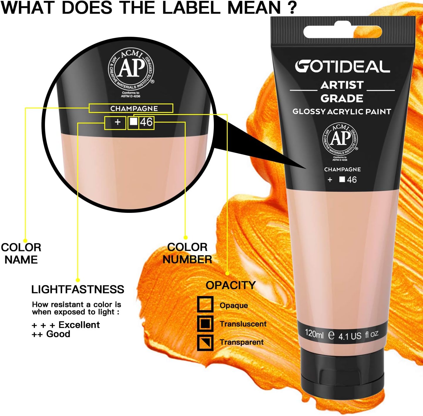 שפופרות צבע אקרילי בצבע שמפניה של GOTIDEAL (120 מ"ל, 4.1 אונקיות) לא רעיל ולא דוהה, פיגמנטים עשירים לציירים, מבוגרים וילדים, אידיאלי לקנבס, עץ, חימר, בד, ציוד קרמי (שמפניה)