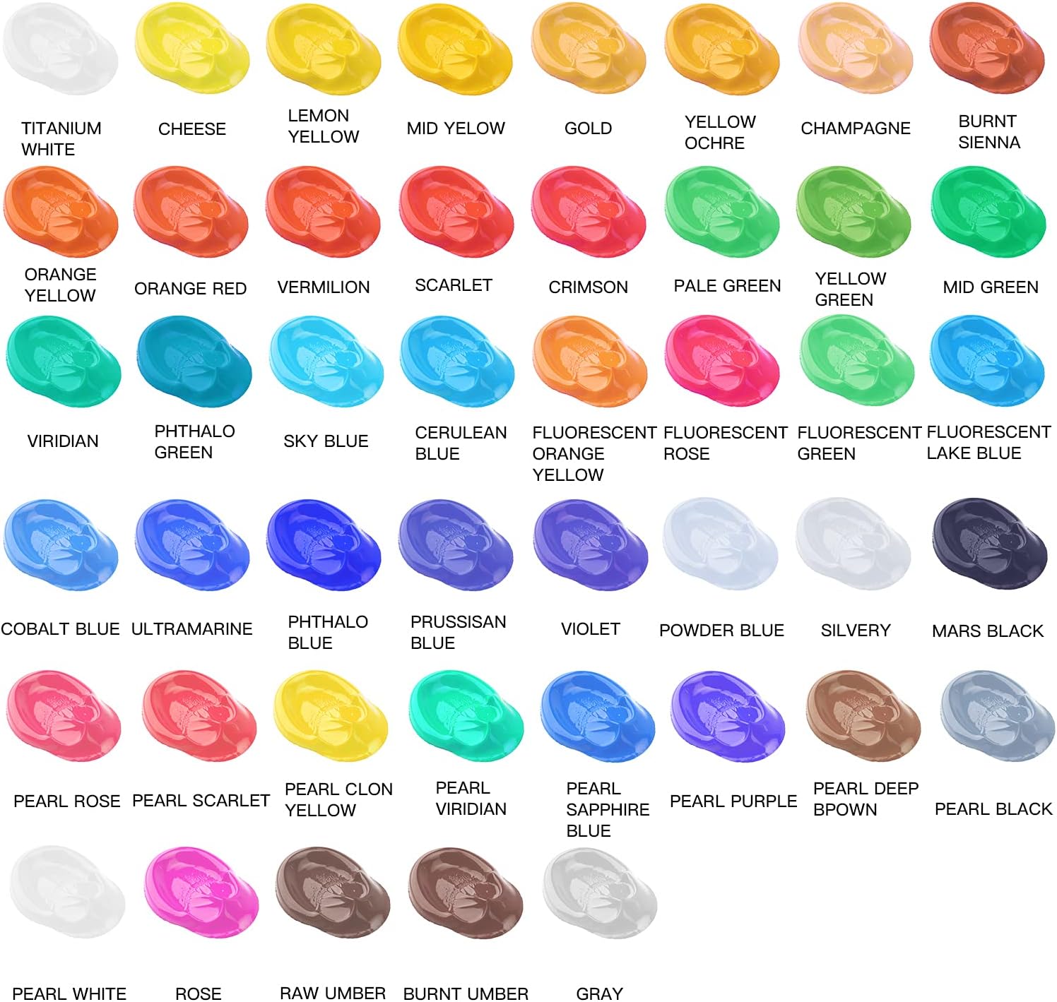 - מתויג באופן אישי: כל שפופרת מסומנת עם מידע על פיגמנט, כולל: רמת אטימות, דירוג עמידות לאור של הגוון, שם/מספר צבע