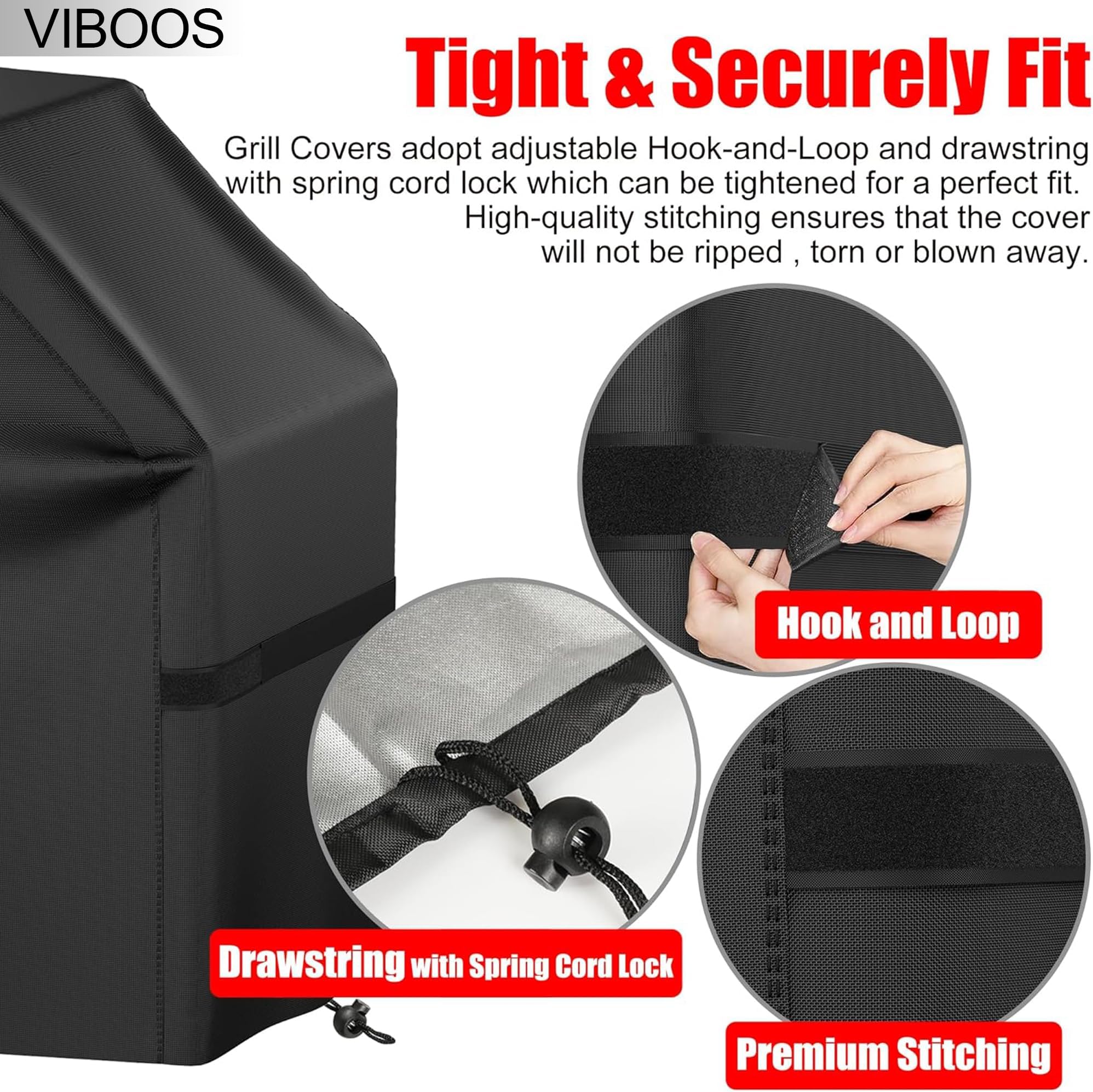 כיסוי גריל, כיסוי גריל גז 58 אינץ' לגריל חיצוני, עמיד למים, אנטי-UV, עמיד בפני קרעים, חומר עמיד לדהייה, כיסוי ברביקיו עם רצועות וו ולולאה ושרוך מתכוונן במכפלת, שחור