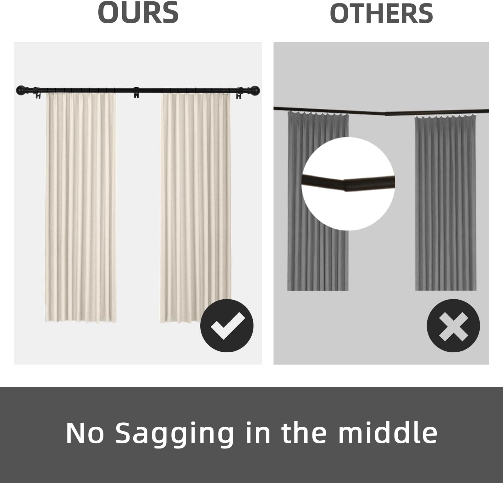 - חזק ועמיד: מוטות וילון מתכת משודרגים עם עיצוב שחבור, הופכים את יכולת התמיכה של מוט הוילון הזה לעלייה ב-200%, מסוגלים לתלות עד 25 ליברות.