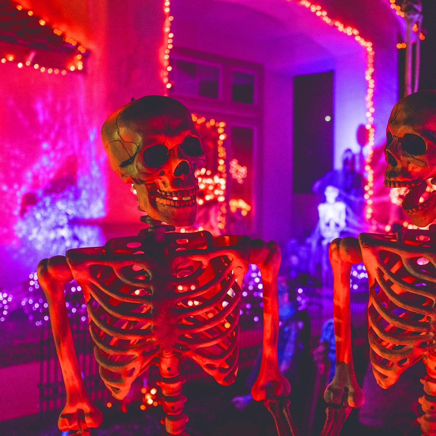 אורות פיות סגולים ליל כל הקדושים: חבילה של 12 נורות LED מופעלות בסוללות באורך 7 רגל ו-20 אינץ' על חוט שחור, אורות ירח זרועי כוכבים למסיבה, חדר שינה, פטיו