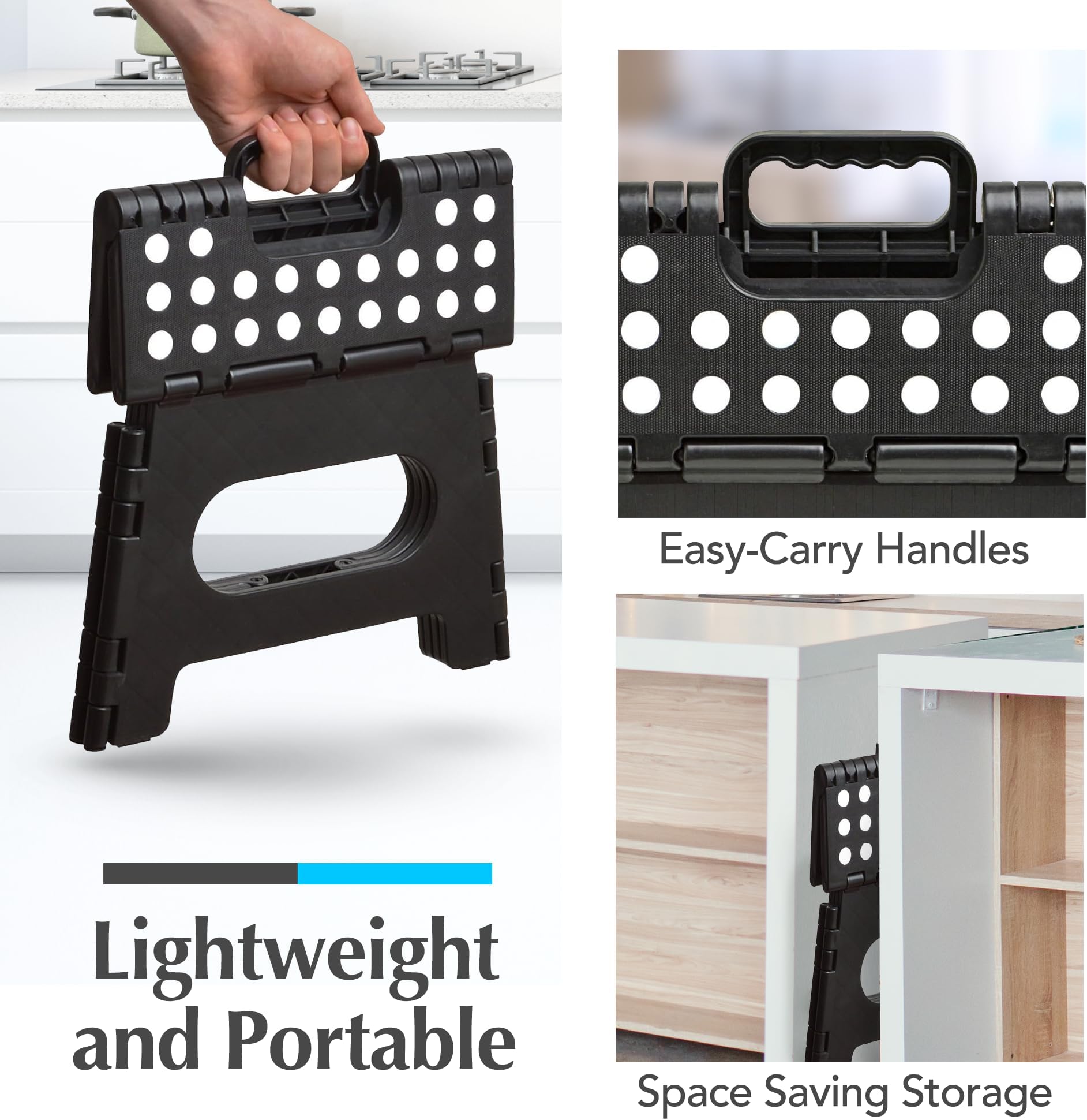 שרפרף מתקפל ונוח לכביסה - שרפרף מתקפל וחזק מספיק לתמיכה במבוגרים ובטוח מספיק לילדים - נפתח בקלות בהיפוך אחד - נהדר למטבח, חדר אמבטיה או חדר שינה (שחור - 23 ס"מ)