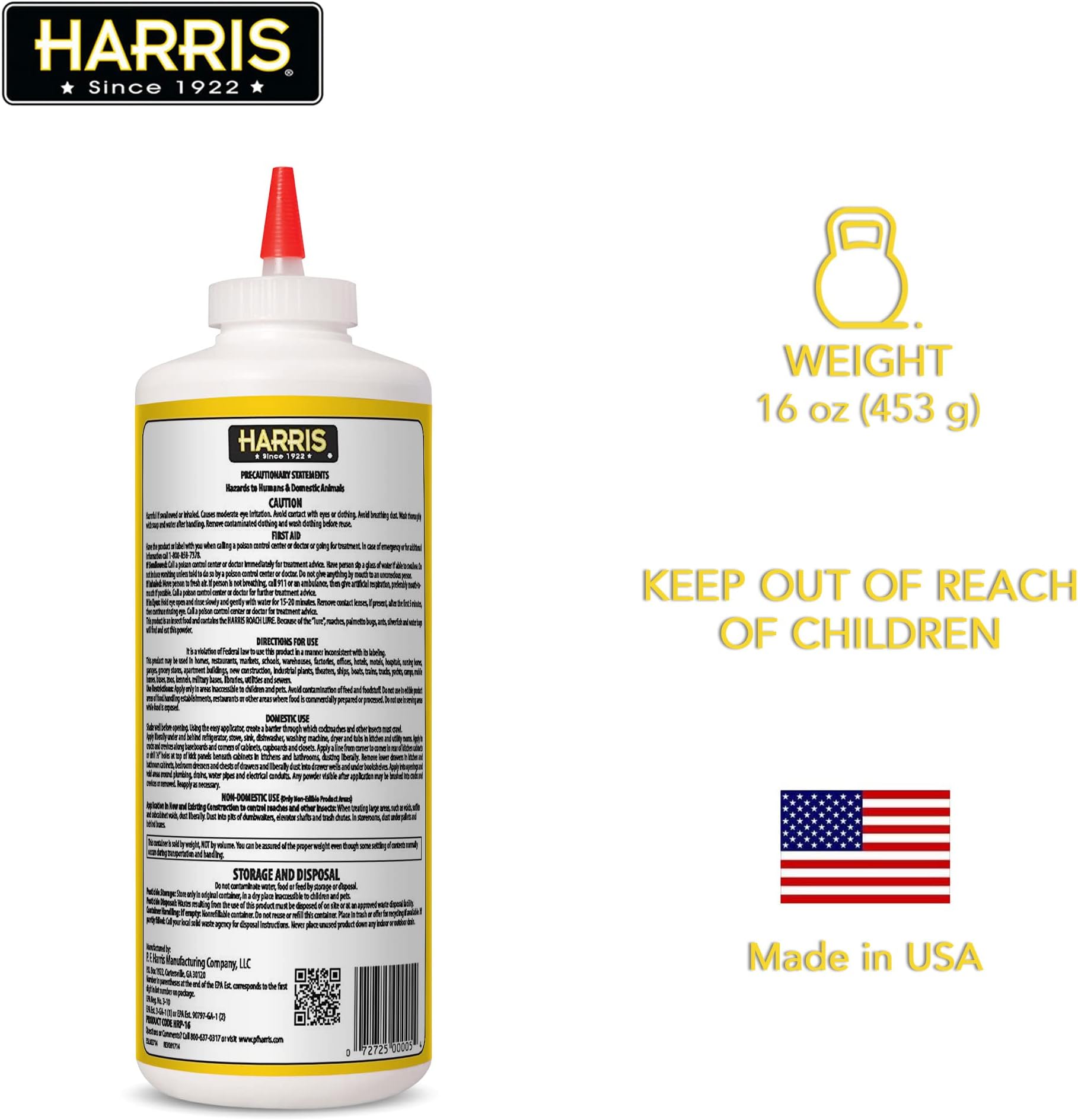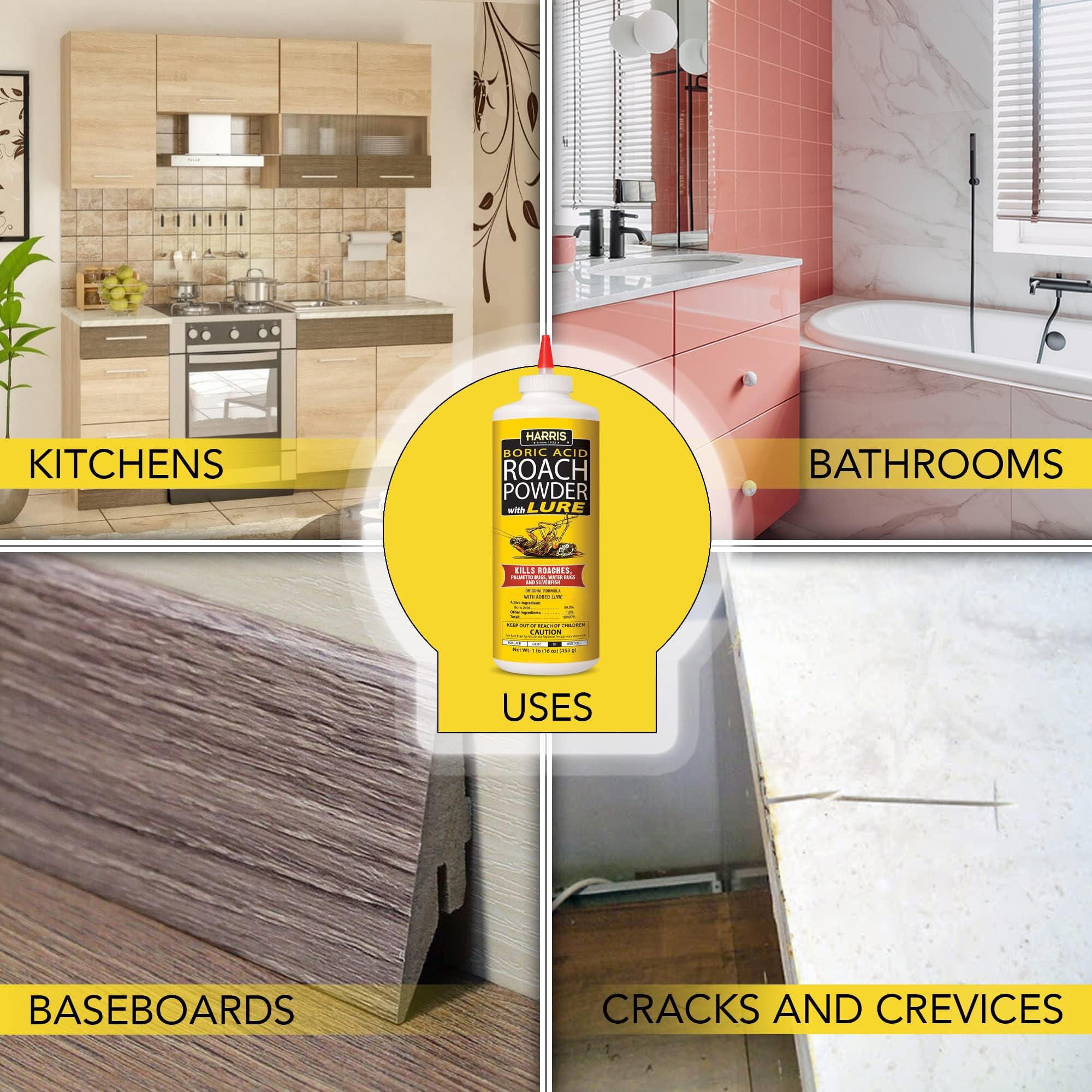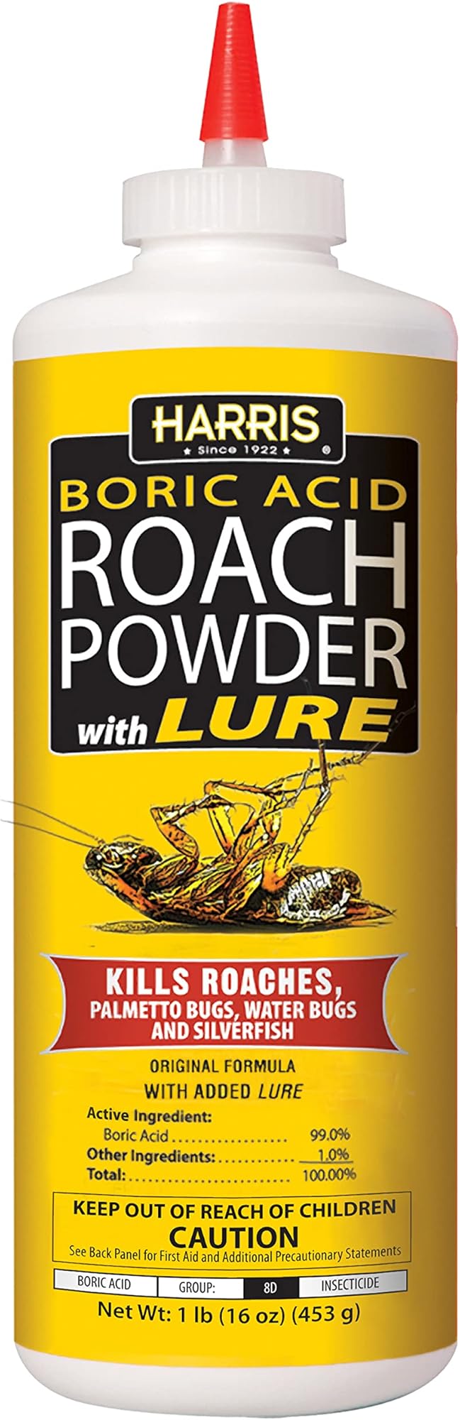 אבקה להרג ג'וקים ודגי כסף בחומצה בורית של האריס עם פיתיון לחרקים (16oz)