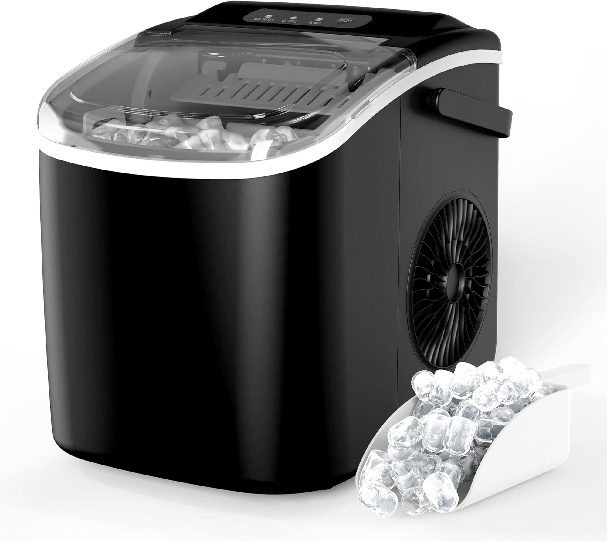 מכונת קרח HealSmart למשטח עבודה, 9 קוביות קרח מוכנות תוך 6 דקות, 11 ק"ג קרח/24 שעות, עם מאפיין ניקוי עצמי, כף קרח וסלסלת קרח, לבית, למטבח, לקמפינג, למסיבה, שחור