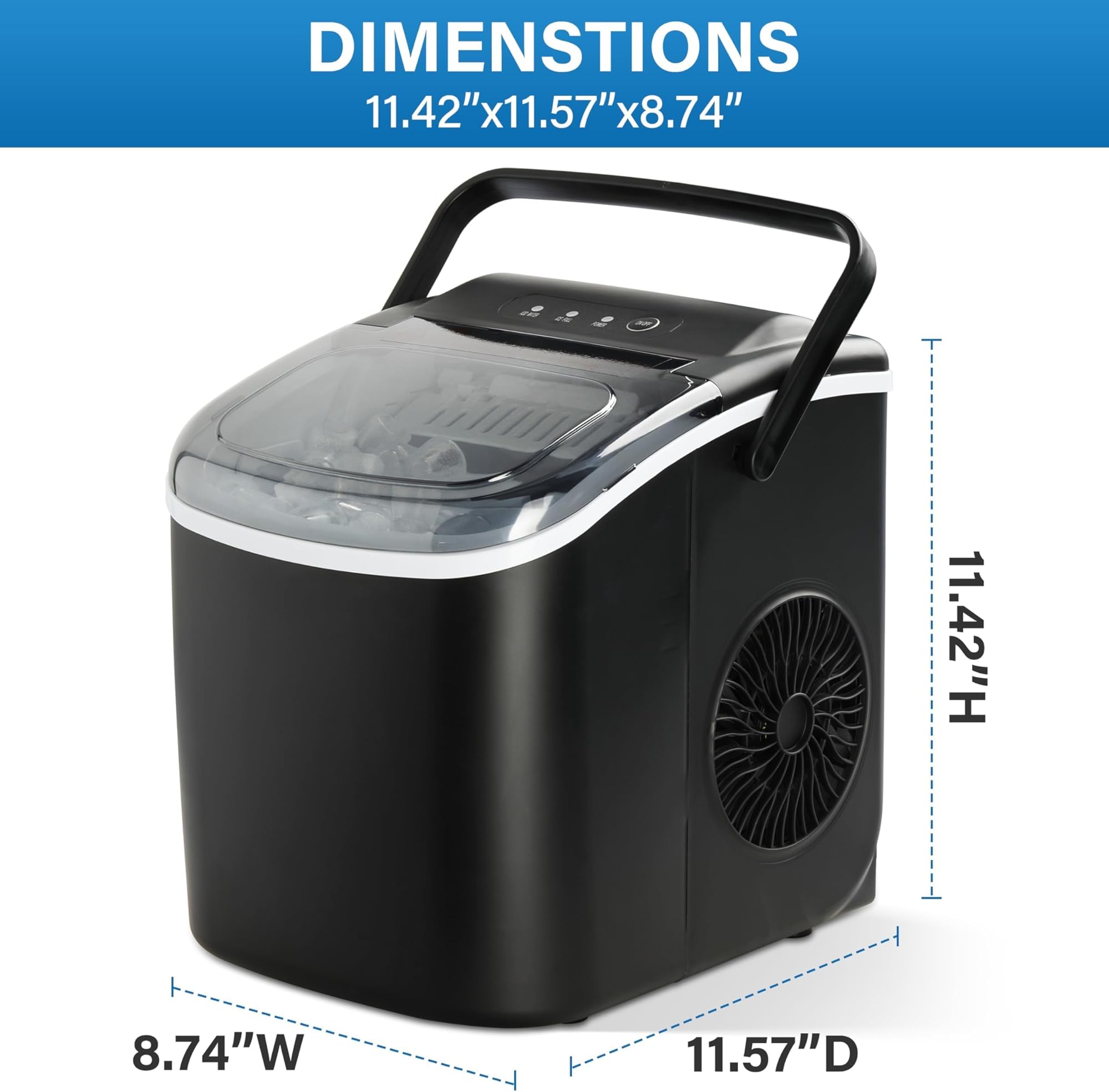 - קומפקטי ונייד: העיצוב הקל והנייד של מכונת הקרח המיני מאפשר אחסון או נשיאה קלים, מידותיו הן 8.8 (רוחב) * 11.6 (עומק) * 11.4 (גובה) בלבד ומשקלו פחות מ-14 פאונד, קל יותר ממותגים אחרים, בשימוש נרחב בבית, במטבח, במשרד, בבר וכו'.