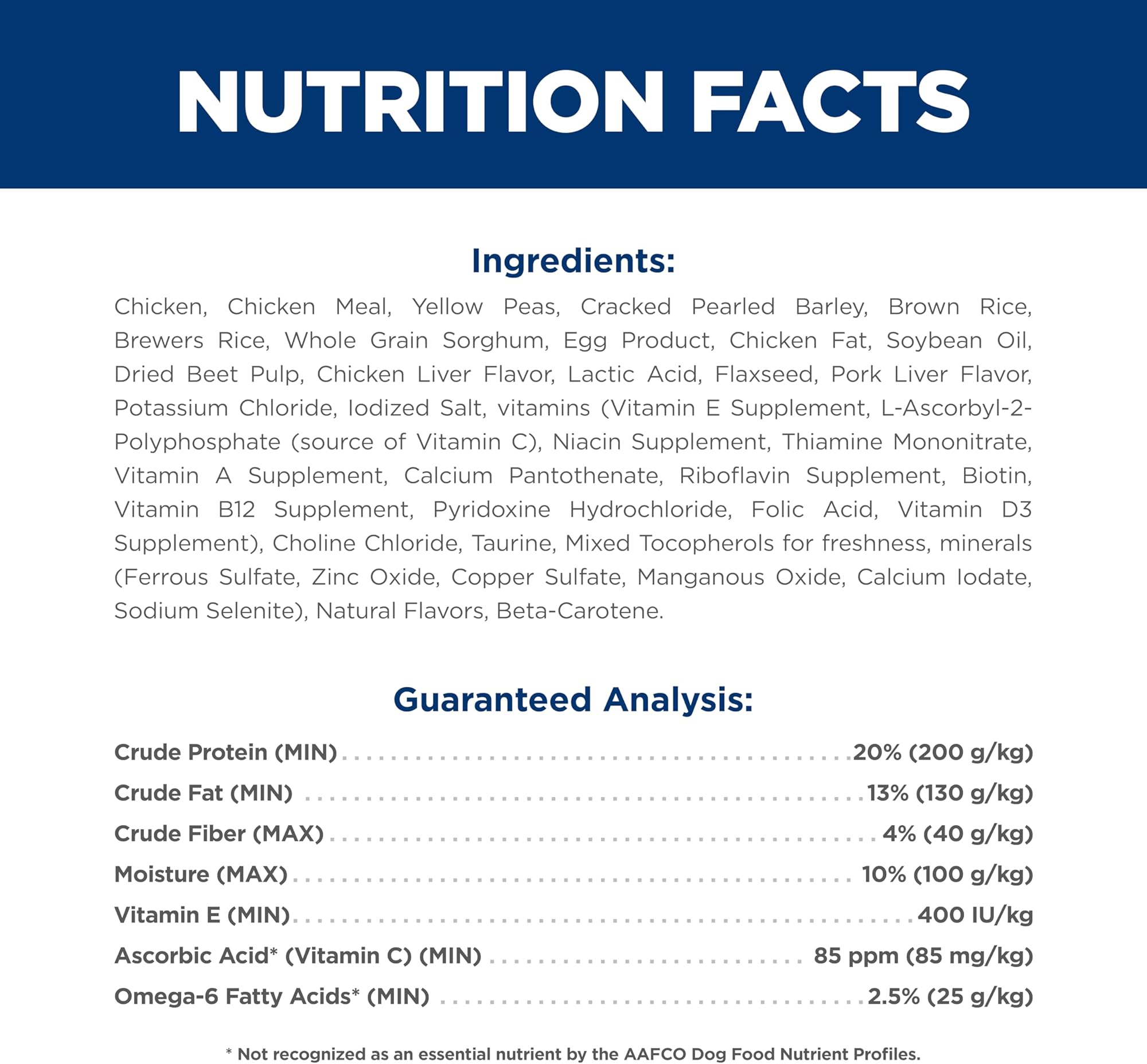 מזון יבש לכלבים של Hill's Science Diet לעור רגיש לקיבה ולקיבה, למבוגרים 1-6, תמיכה ברגישות בקיבה ובעור, מתכון לעוף, שקית 15.5 ליברות