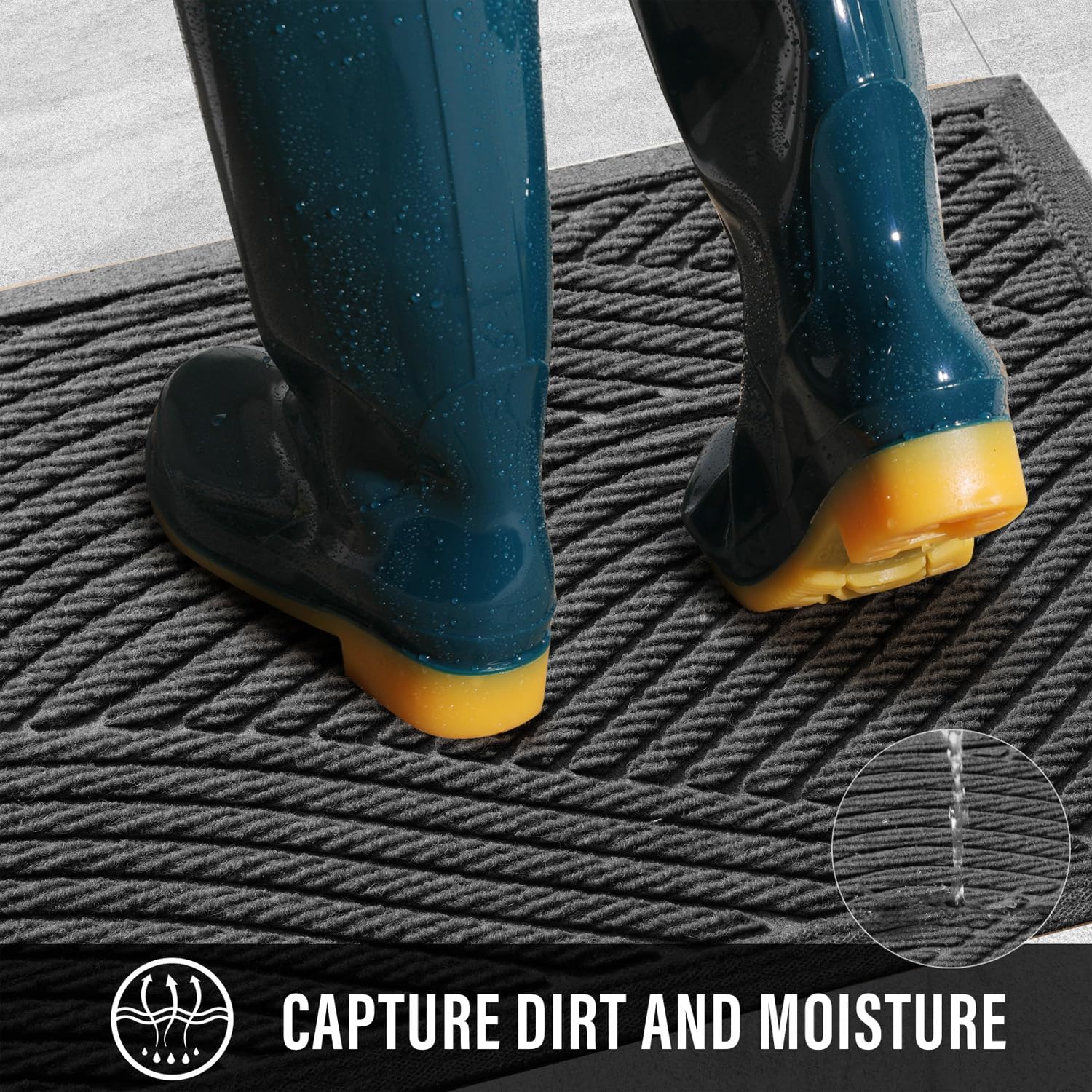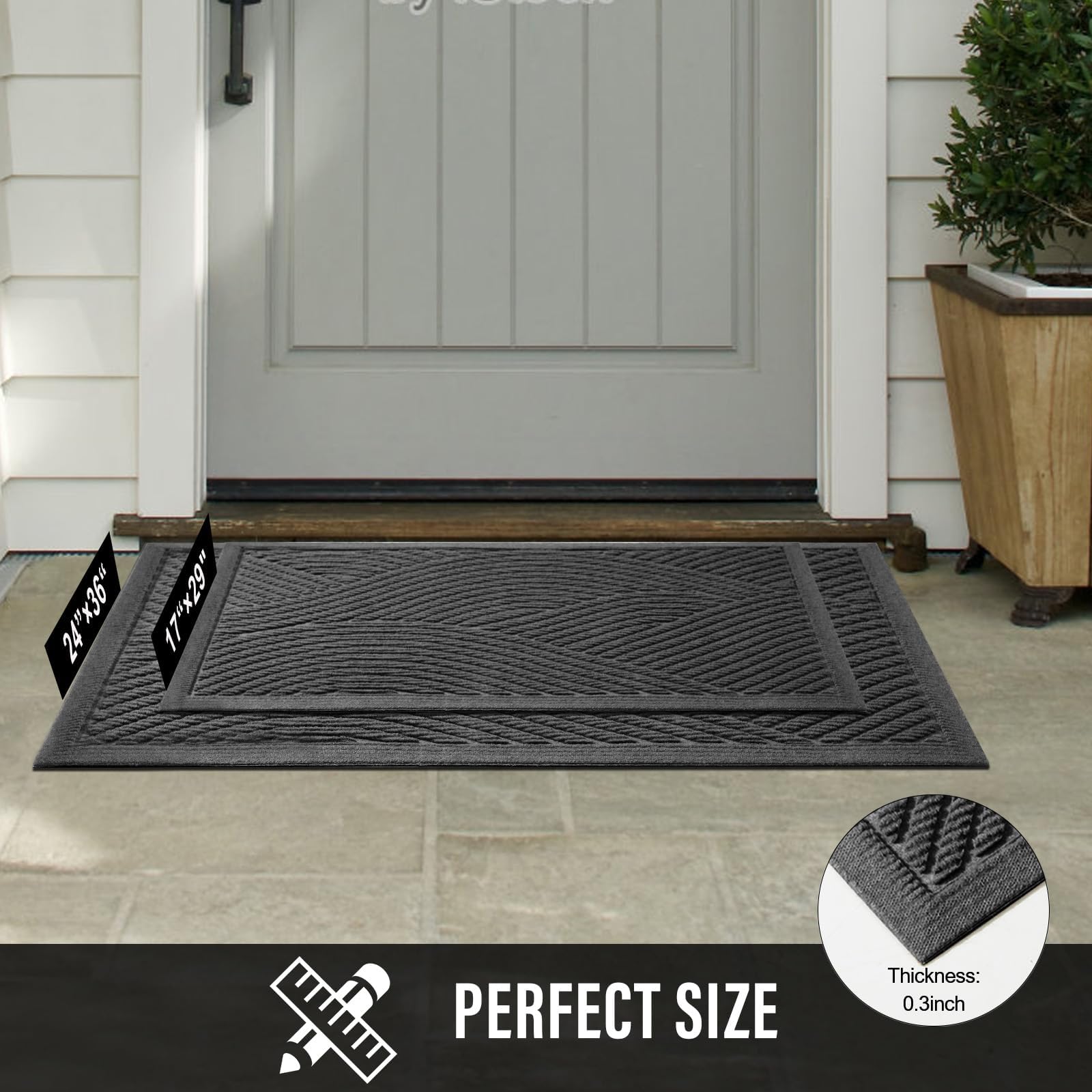 שטיח HIYARD לדלת הכניסה החזקה, שטיחי דלת סופגים ועמידים בפני בוץ ולכלוך, חיצוני ופנימי, עמידים בפני כתמים ודהייה, שטיח כניסה נמוך פרופיל נגד החלקה לכניסה, 36×24, אפור