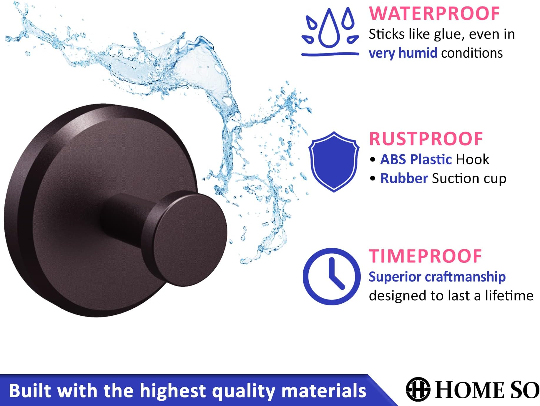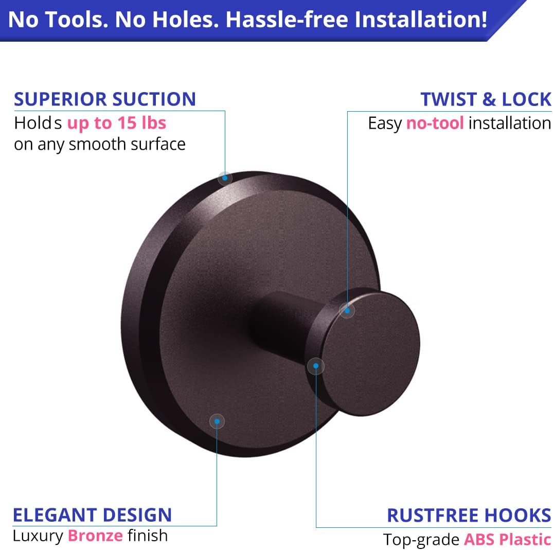 ווים עם כוס יניקה של HOME SO למקלחת, חדר אמבטיה, מטבח, דלת זכוכית, מראה, אריחים - וו לופה, מגבת, מעיל, חלוק אמבטיה לתלייה עד 15 פאונד - עמיד למים וחלודה, ברונזה כהה (חבילה של 2)