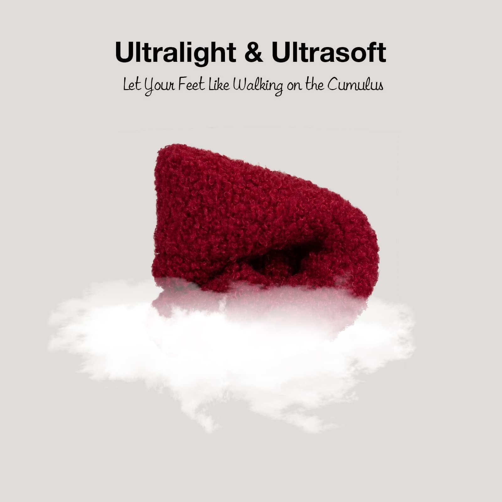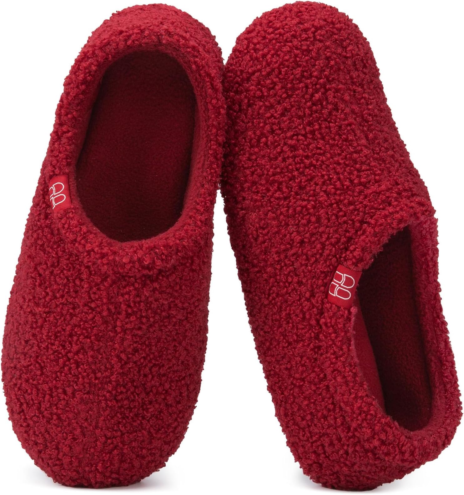 נעלי בית מפוארות לנשים עם קצף זיכרון ופרווה מתולתלת, נעלי בית לחדר שינה ועם בטנת פליז פולארי (10.5, אדום יין)