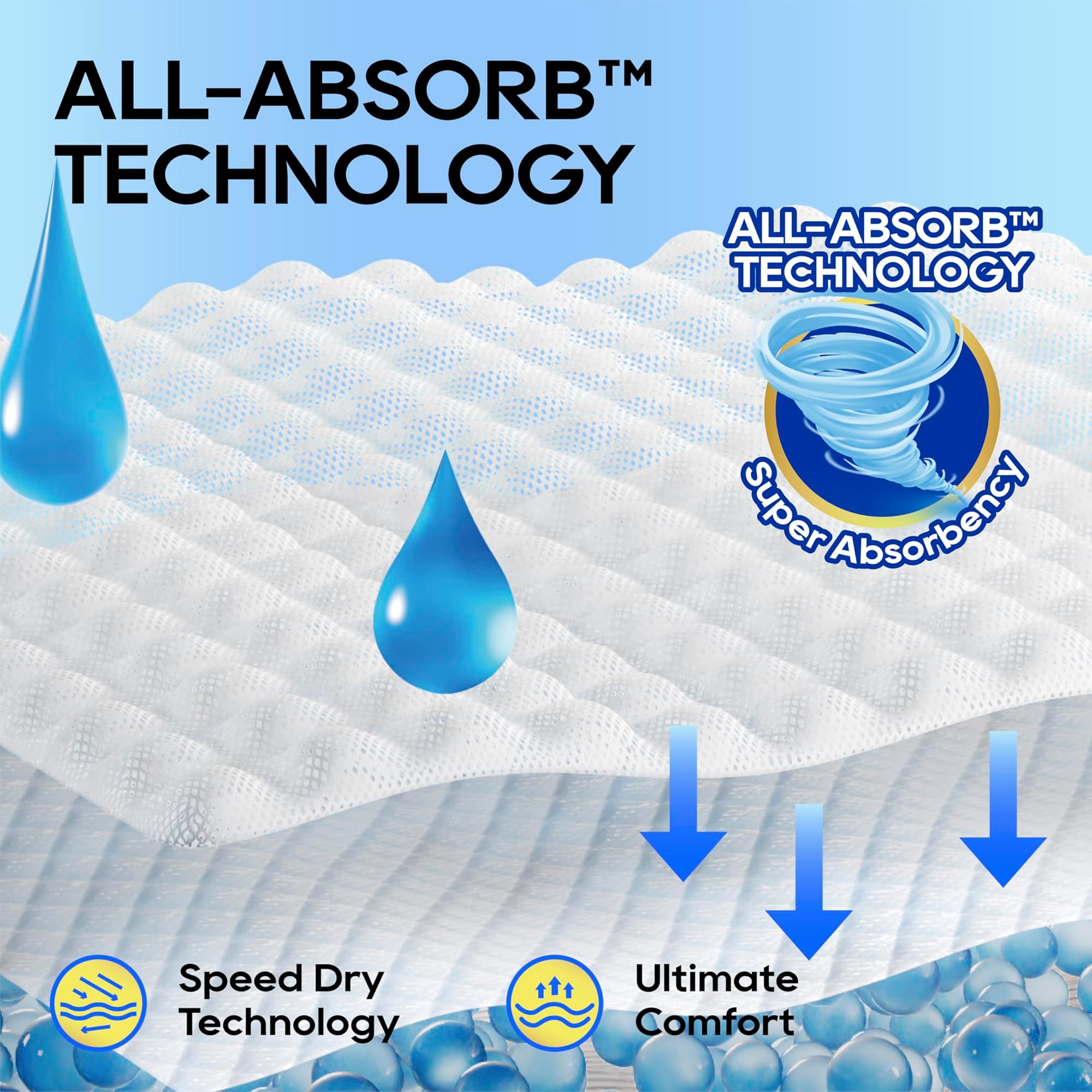 - נוחות להרמת רגליים - לא משנה כמה רגוע הקטנצ'יק שלכם, הבד הגמיש הייחודי של All-Absorb חד פעמי לגברים יתאים לו בנוחות ובבטחה.