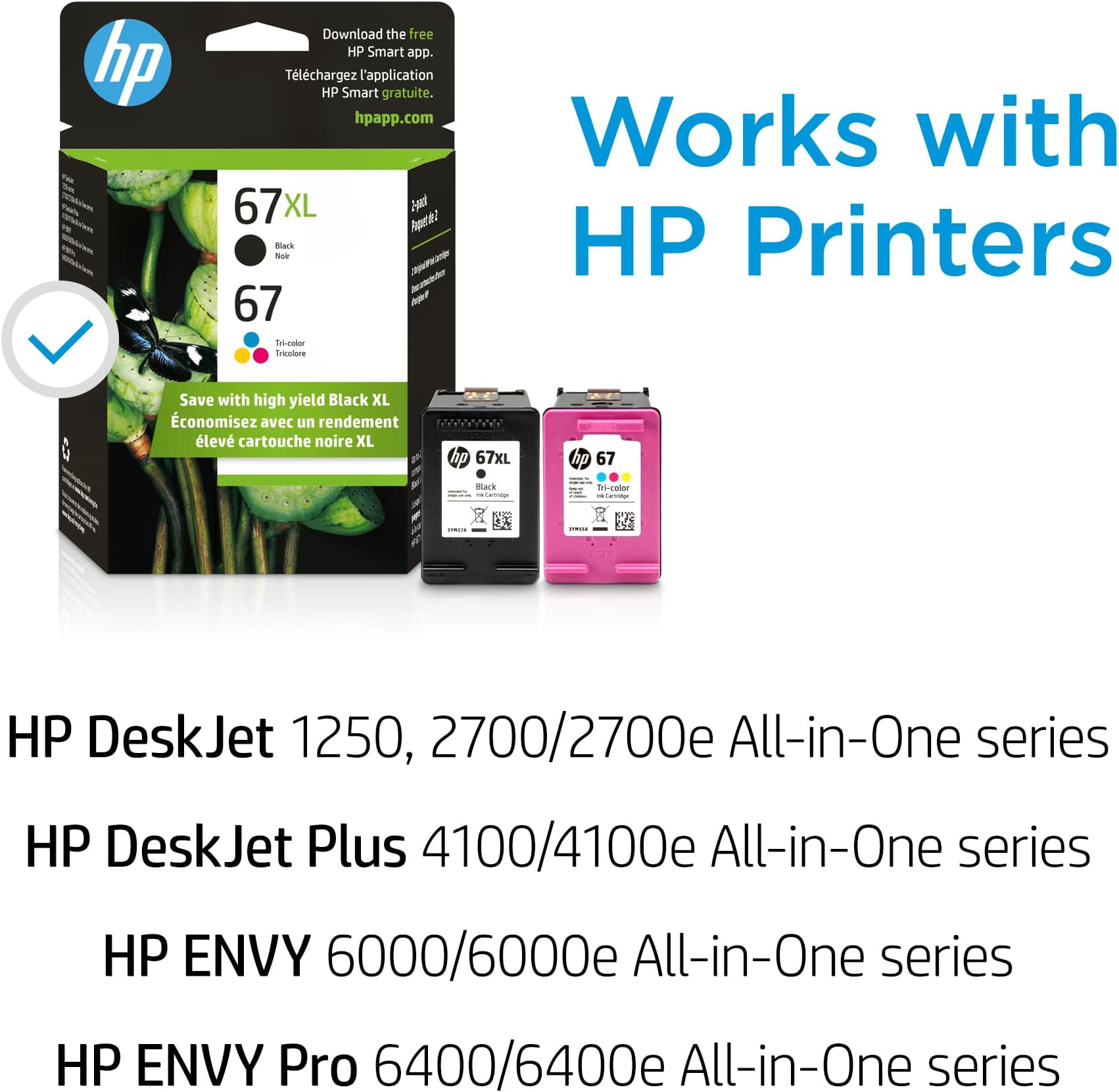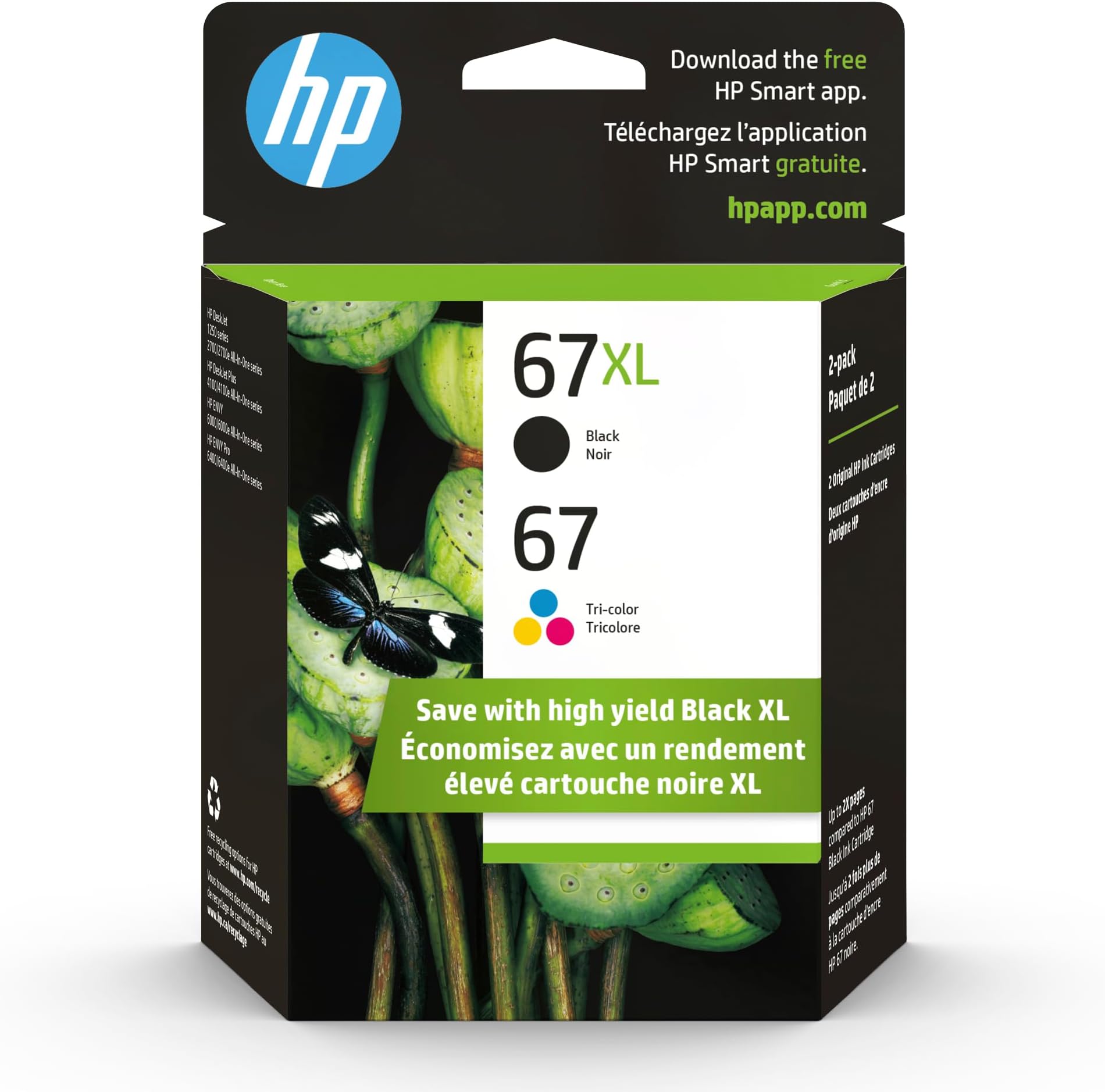 ראשי דיו שחורים מקוריים של HP 67 בצבעים שונים / 67XL (חבילה של 2) | מתאים לסדרות DeskJet 1255, 2700, 4100 ו-Envy 6000 ו-6400 | זכאי ל-Instant Ink | 3YP30AN