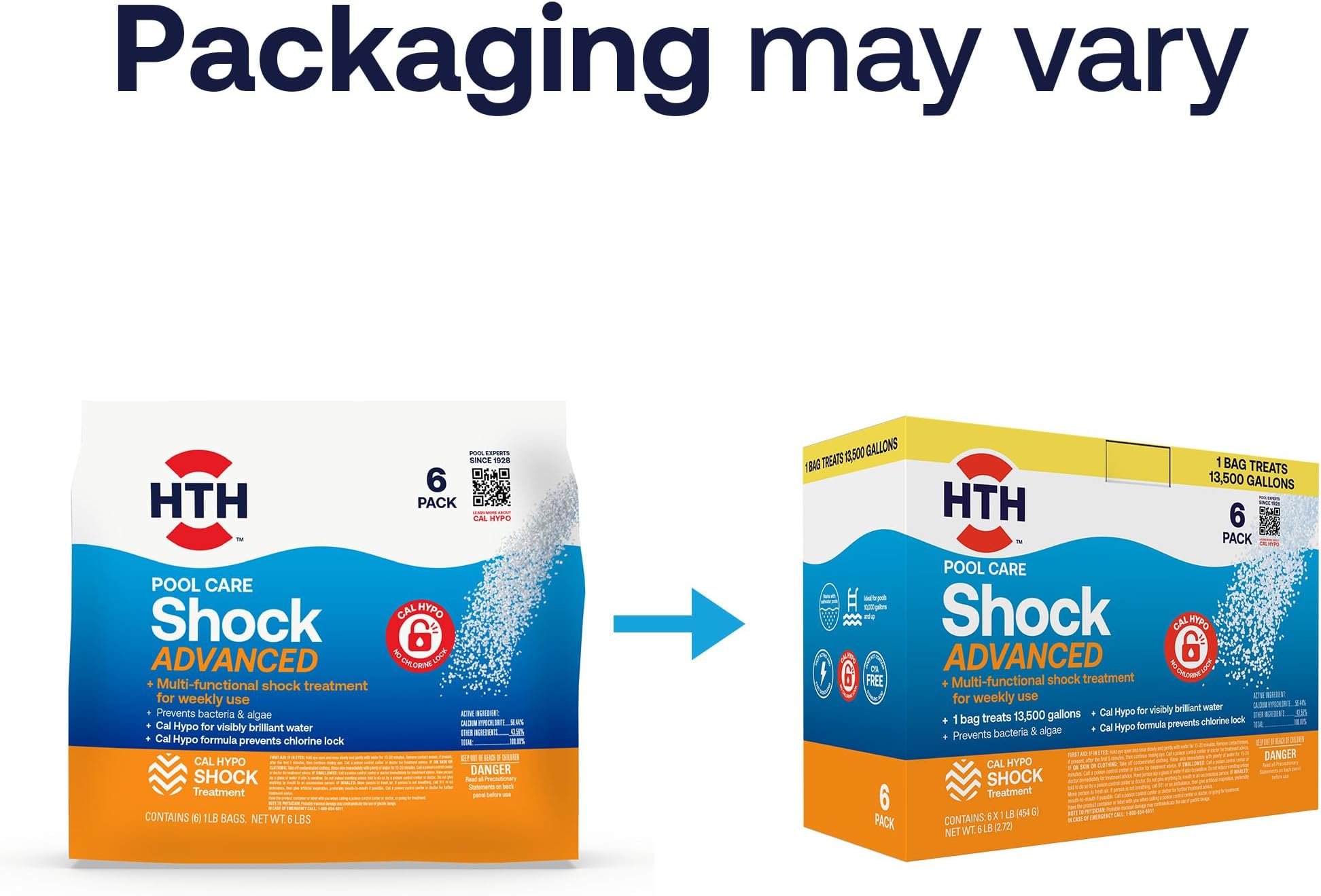 HTH 52036R Pool Care Shock Advanced, כימיקל לבריכה - פורמולת Cal Hypo, מונע חיידקים ואצות, משקם מים צלולים - טיפול בהלם, (חבילה של 6)
