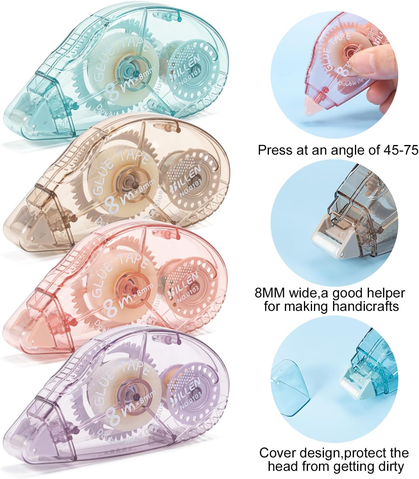 - קיבולת: כל גליל סרט דביק ברוחב של 8 מ"מ ובאורך של 8 מטר. הגדילו את הכמות. זה מספיק לכם ולמשפחתכם להכנת כרטיסים, יצירות ועטיפות מתנה.