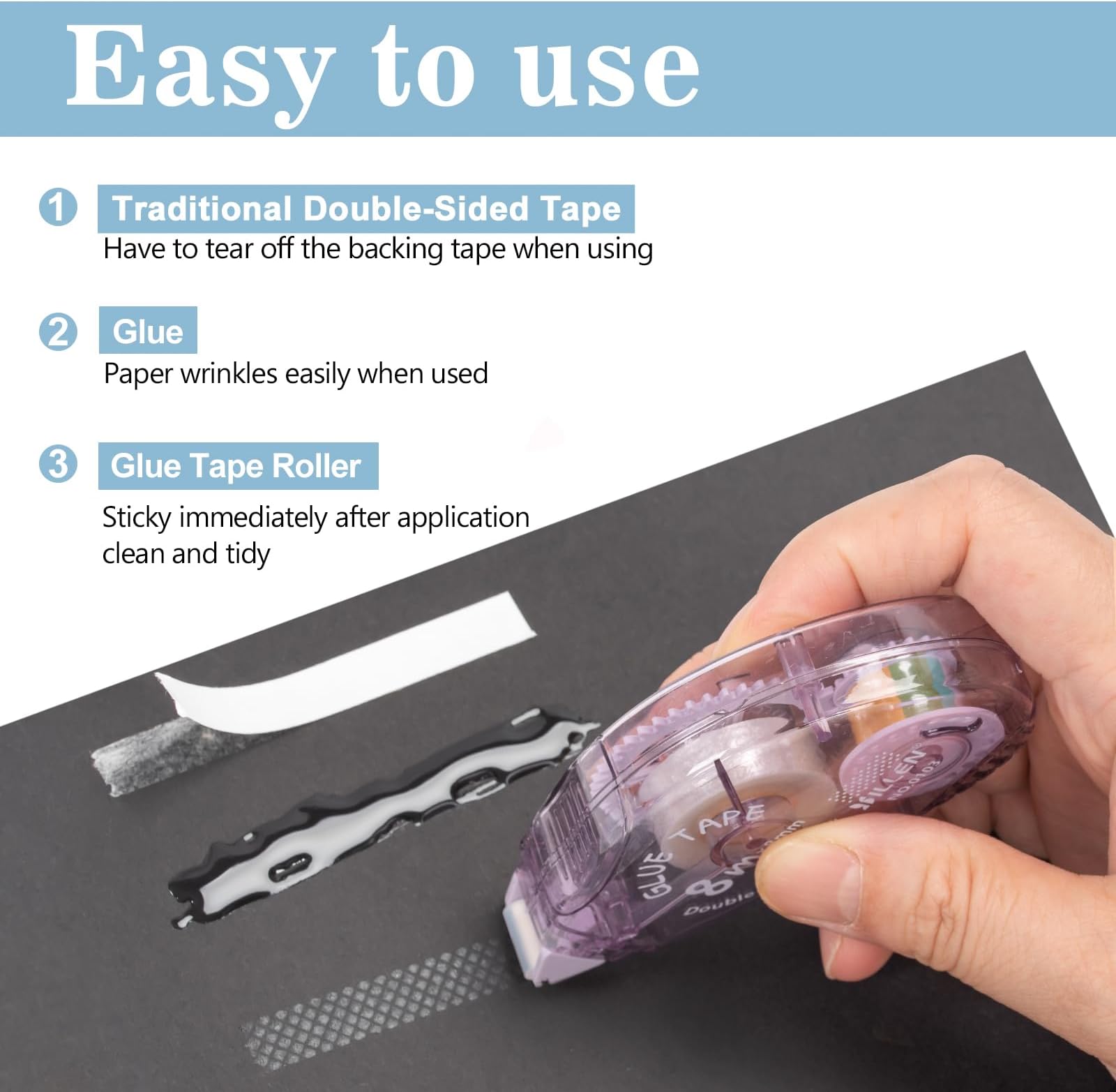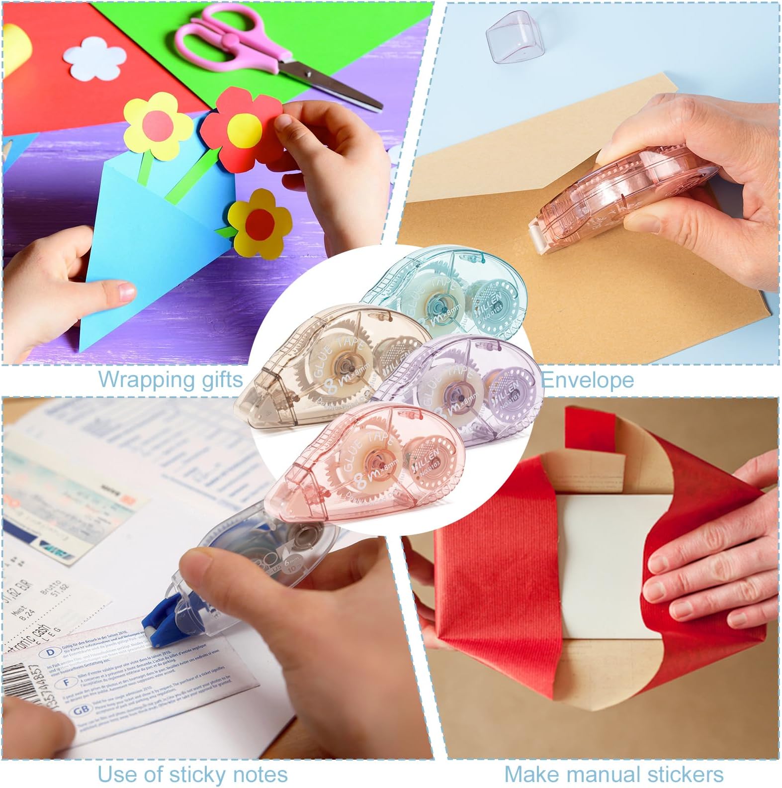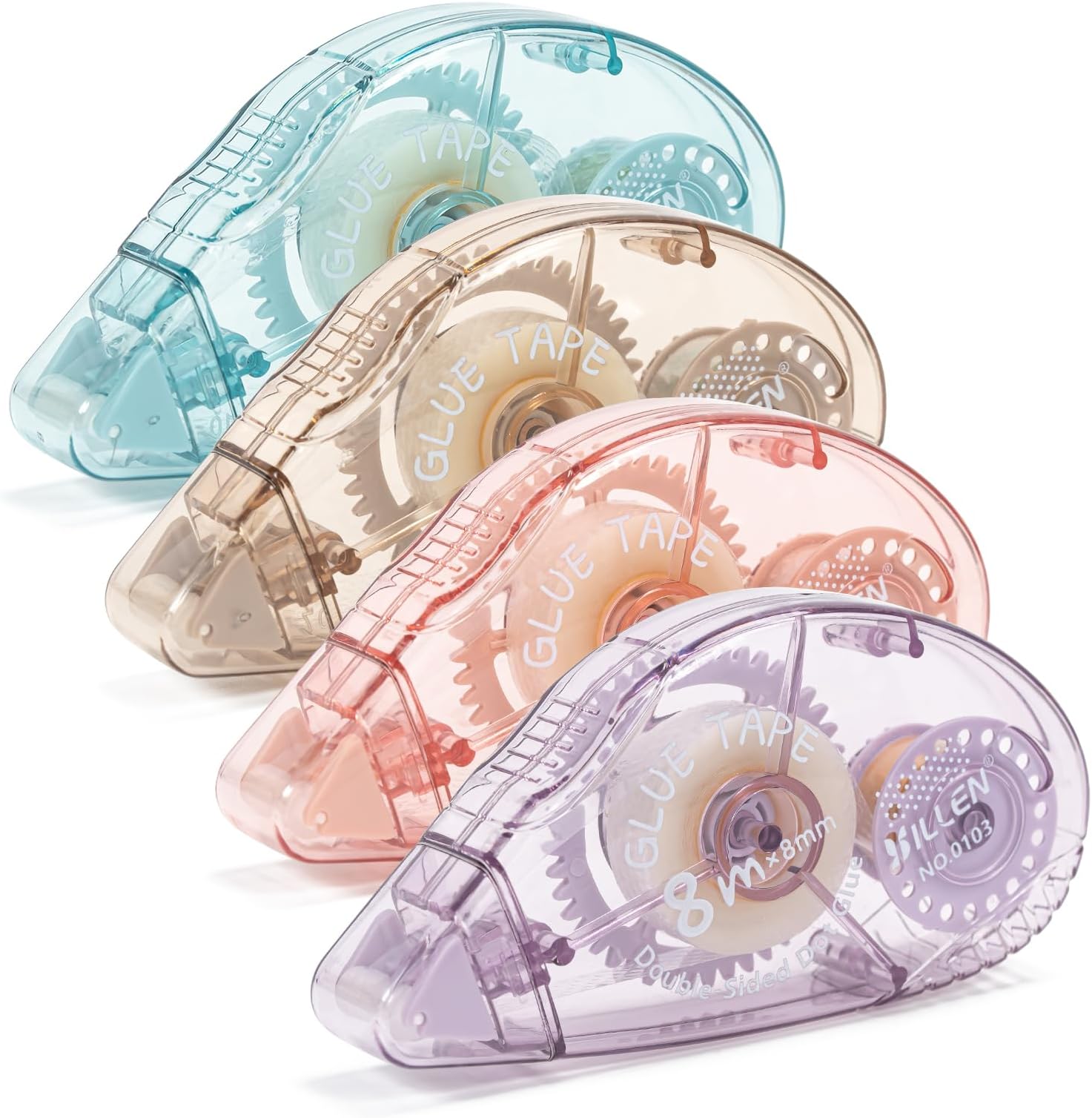 רולרי סרט דביק דו צדדיים של HUIRUSO מארז 4 יחידות, ציוד לאלבומי סקראפבוקינג, רולרי סרט דביק ליצירות, ראנר סרט דביק דו צדדי לאלבומי סקראפבוקינג, ציוד לרישום במשרד ובבית הספר (0.31 אינץ' X 26.25 רגל)