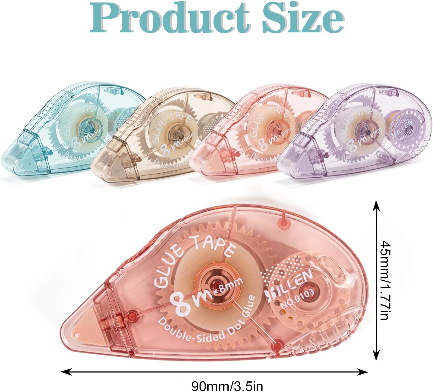 - סט סרט הדבקה דו צדדי: סט של 4 גלילי סרט הדבקה ב-4 צבעים שונים - סגול/כחול/ורוד/חום